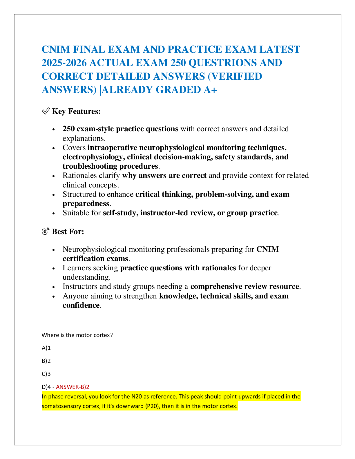 Electronics > EXAM > CNIM FINAL EXAM AND PRACTICE EXAM LATEST 2025-2026 ACTUAL EXAM 250 QUESTRIONS AND CORRECT DETAILED ANSWERS (VERIFIED ANSWERS) |ALREADY GRADED A+ (All)