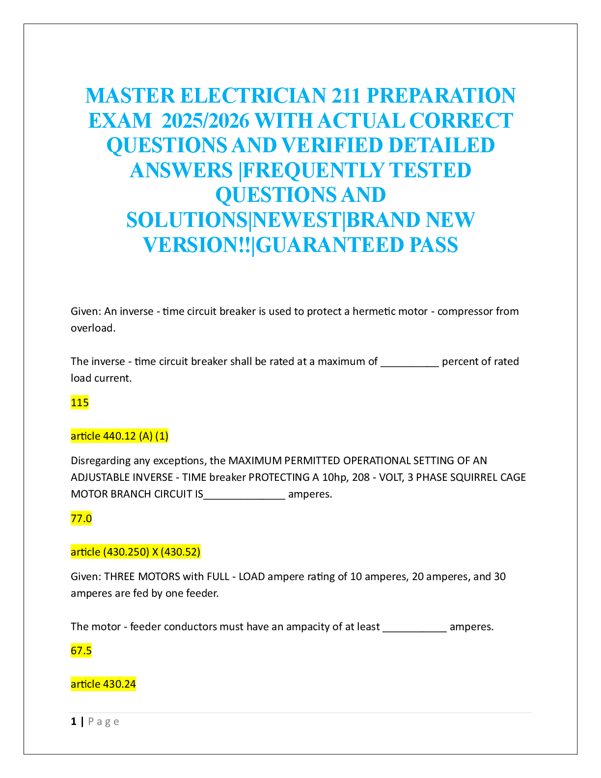 Electronics > EXAM > MASTER ELECTRICIAN 211 PREPARATION EXAM (All)