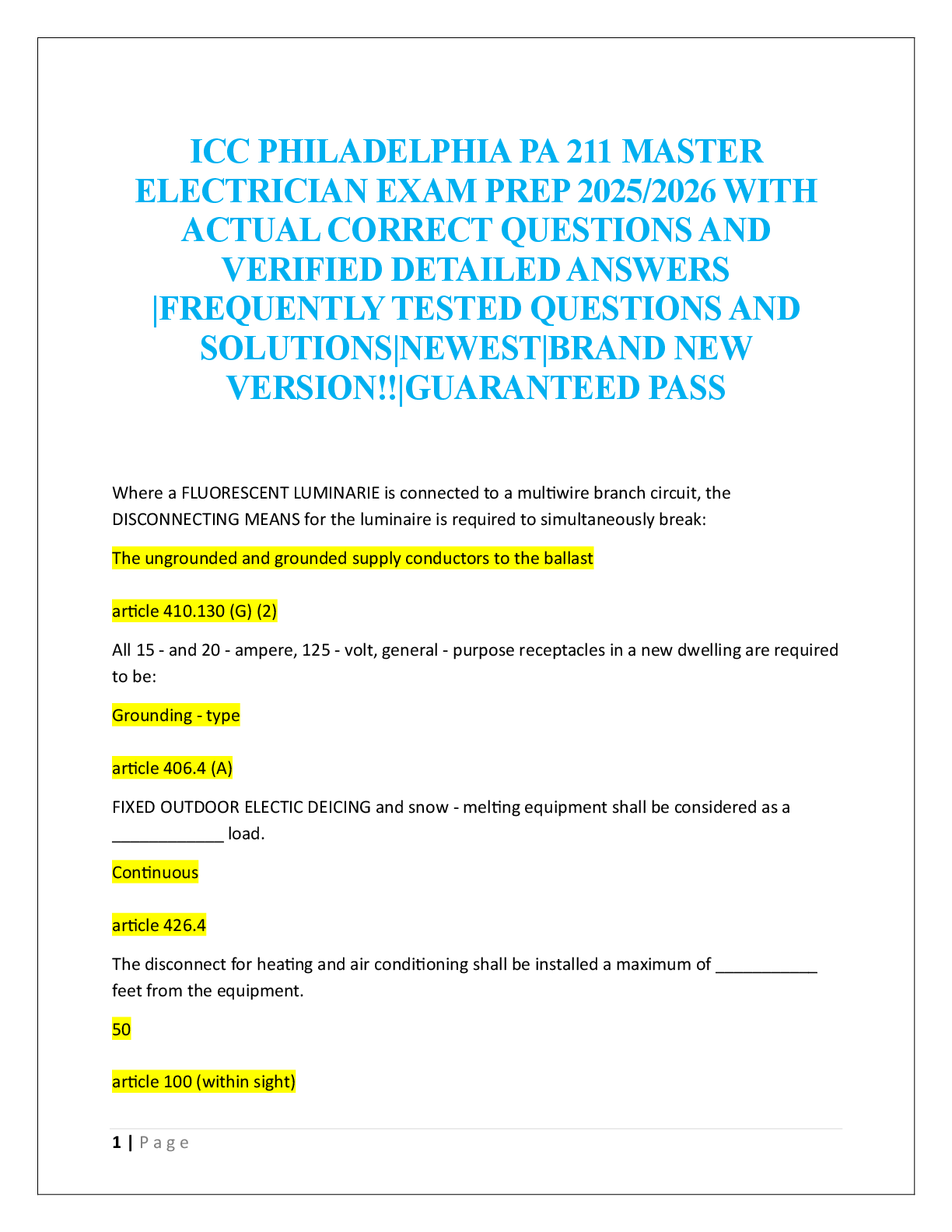 Electronics > EXAM > ICC PHILADELPHIA PA 211 MASTER ELECTRICIAN EXAM PREP (All)