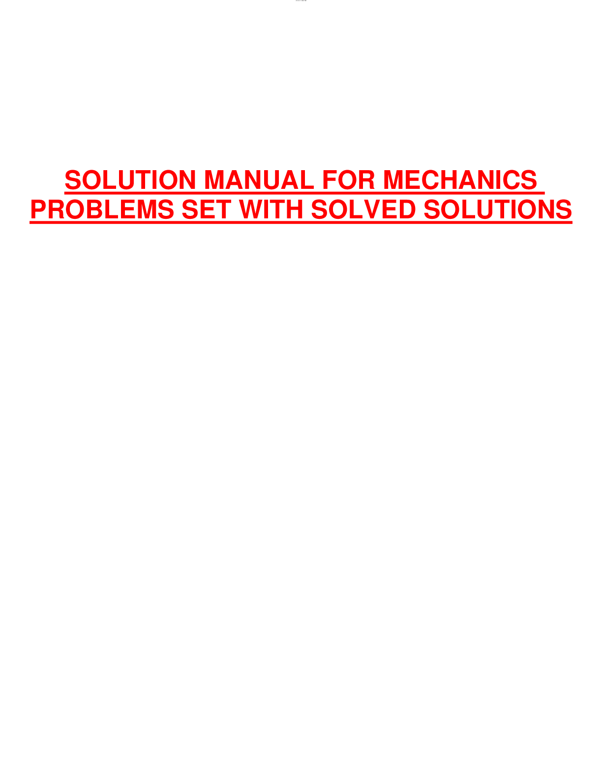 Mechanical Engineering > EXAM > SOLUTION MANUAL FOR MECHANICS PROBLEMS SET WITH SOLVED SOLUTIONS (All)