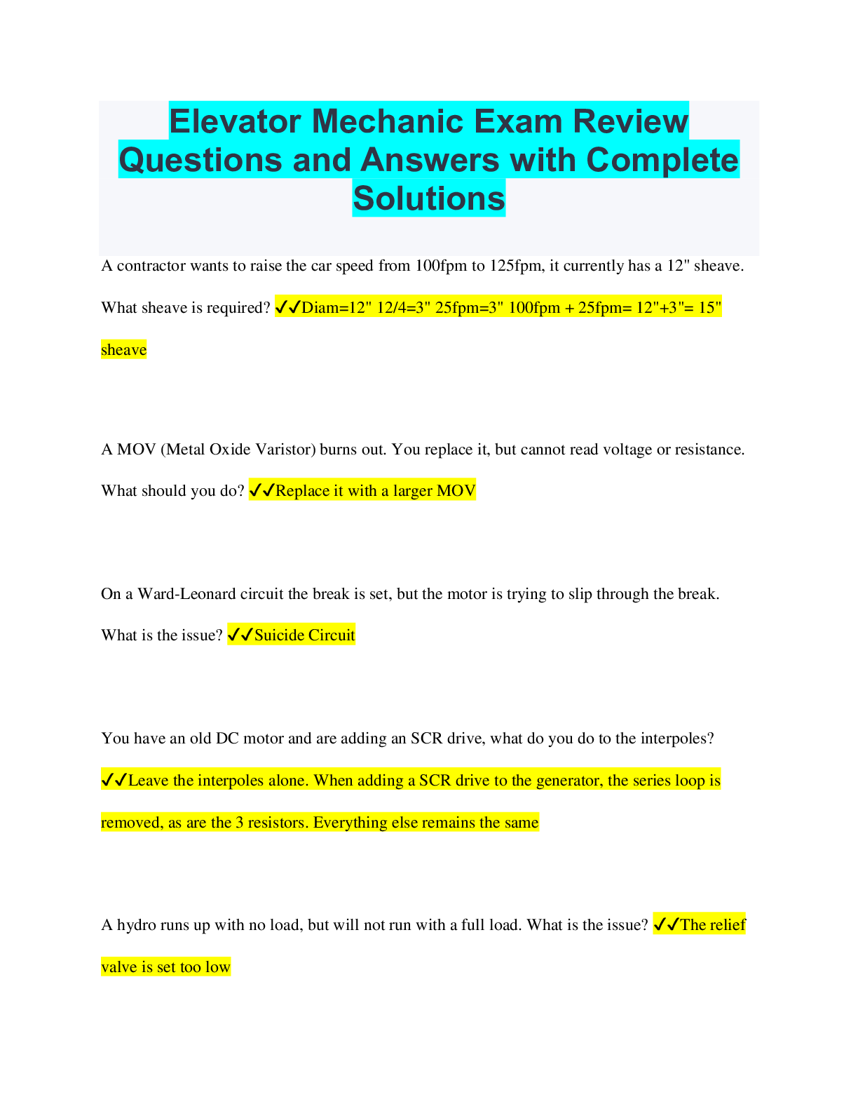 Mechanical Engineering > EXAM > Elevator Mechanic Exam Review Questions and Answers with Complete Solutions (All)