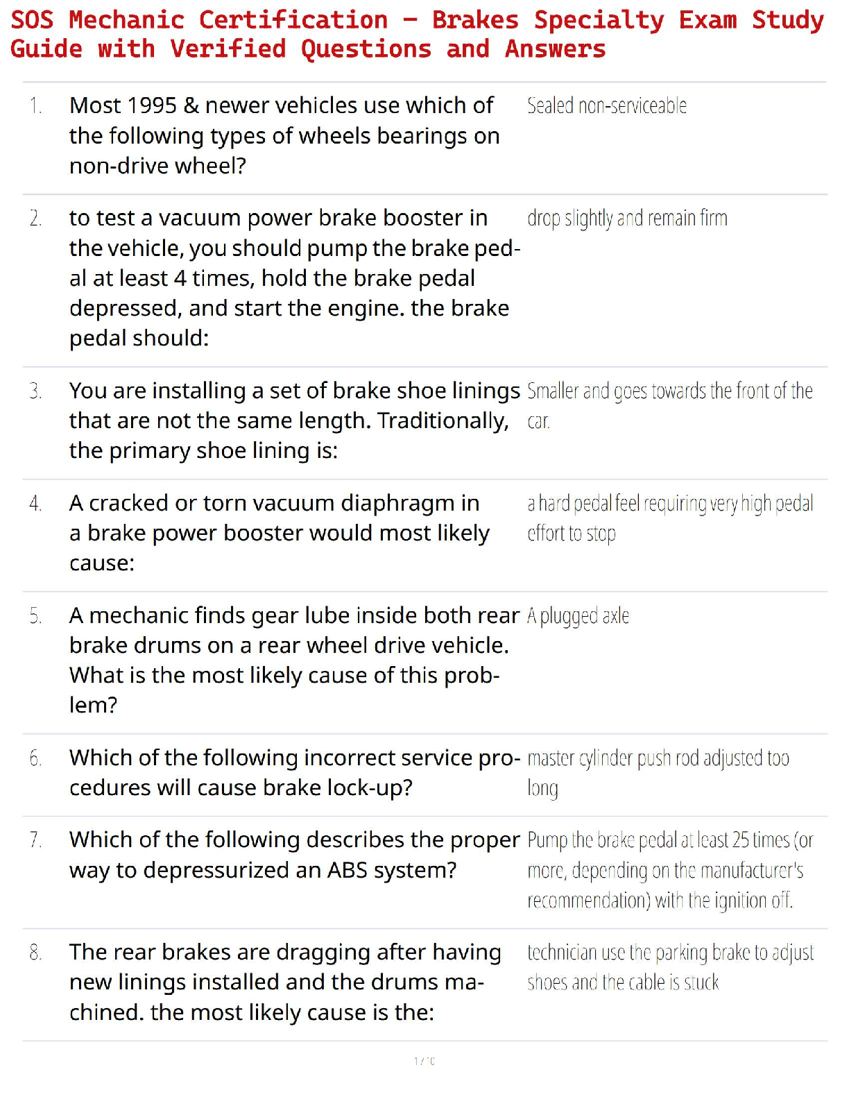 Mechanical Engineering > QUESTIONS & ANSWERS > SOS Mechanic Certification – Brakes Specialty Exam Study Guide with Verified Questions and Answers (All)
