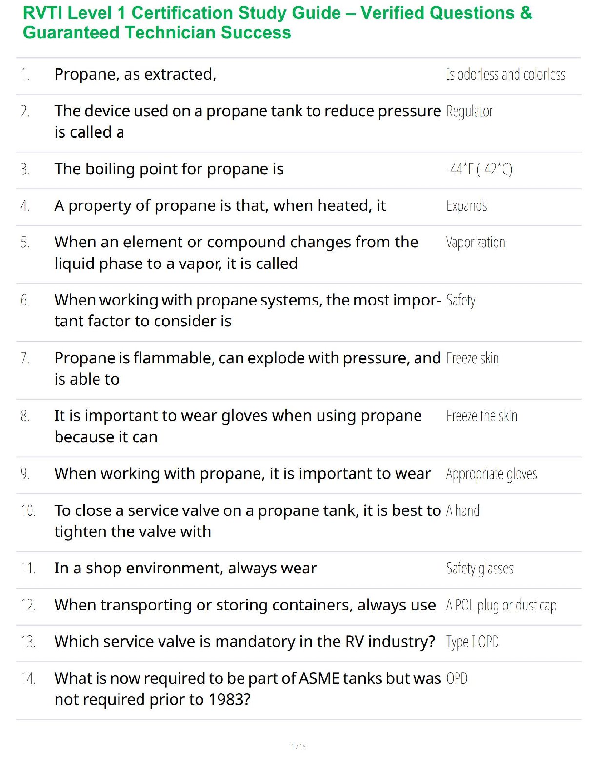 Mechanical Engineering > QUESTIONS & ANSWERS > RVTI Level 1 Certification Study Guide – Verified Questions & Guaranteed Technician Success (All)