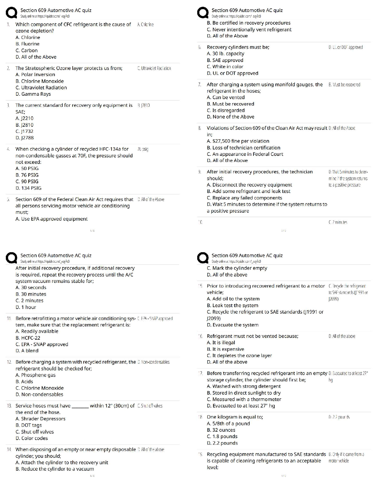 Mechanical Engineering > QUESTIONS & ANSWERS > Section 609 Automotive AC Quiz / Score 100% / New Version / 2025 Update / Study Guide & Test Bank (All)