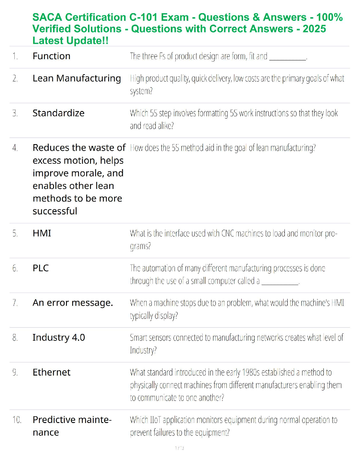 Mechanical Engineering > QUESTIONS & ANSWERS > SACA Certification C-101 Exam - Questions & Answers - 100% Verified Solutions - Questions with Correct Answers - 2025 Latest Update!! (All)
