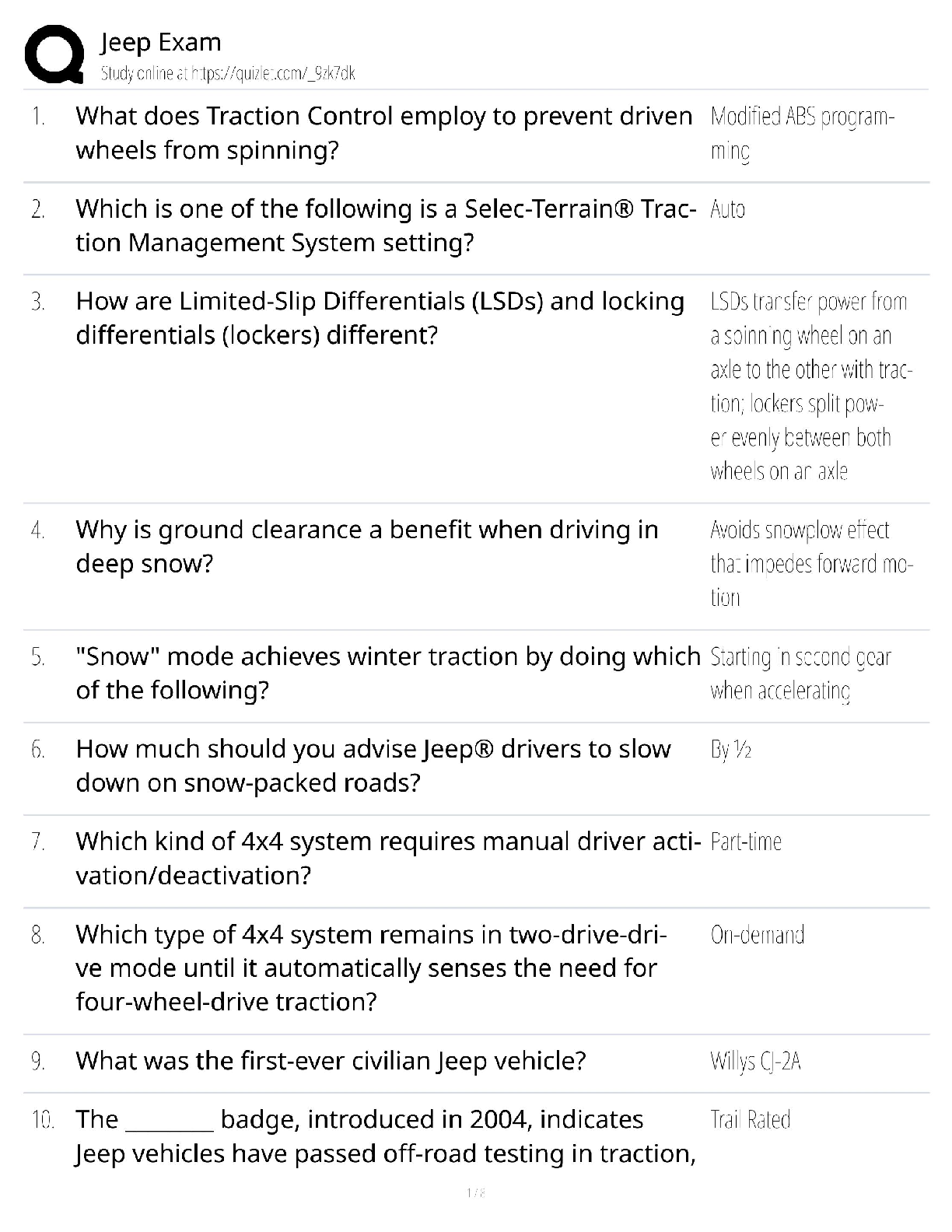 Mechanical Engineering > QUESTIONS & ANSWERS > Jeep Exam Test Bank / Chrysler Technician Certification / 2025 Update / Score 100% (All)