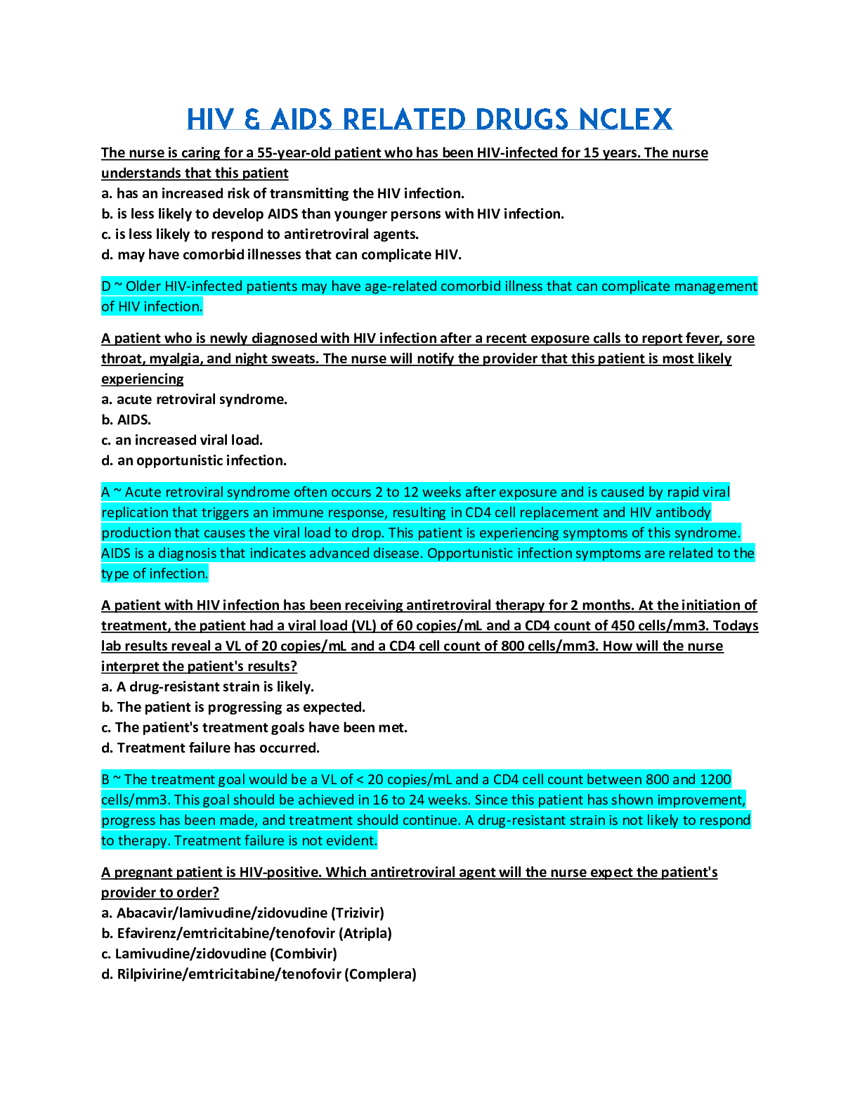 HIV Management > EXAM > HIV & AIDS Related Drugs NCLEX (Questions, Answers & Explanations) A+ (All)