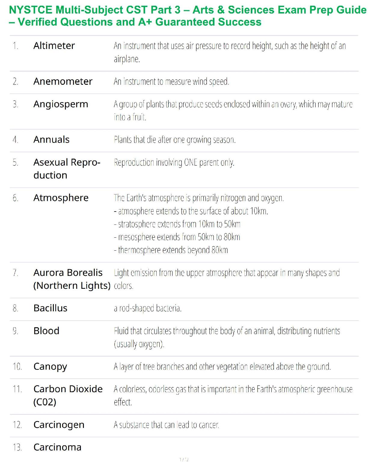 Professional Teaching Knowledge > STUDY GUIDE > NYSTCE Multi-Subject CST Part 3 – Arts & Sciences Exam Prep Guide – Verified Questions and A+ Guaranteed Success (All)