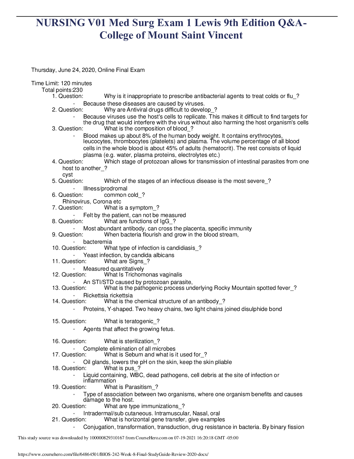 Botany > EXAM > BIOS 242 Week 8 Final Exam StudyGuide plus Review: Summer 2021 (All)
