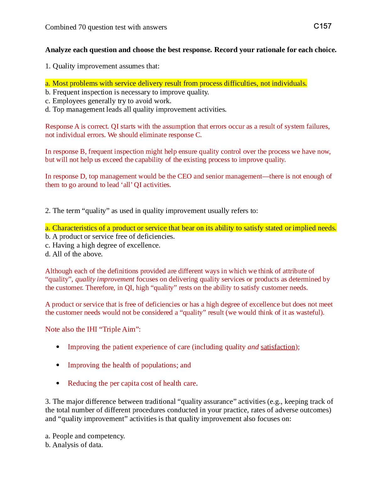 Botany > QUESTIONS & ANSWERS > C157 and C128 combined test with 70 questions answers with rationales (All)