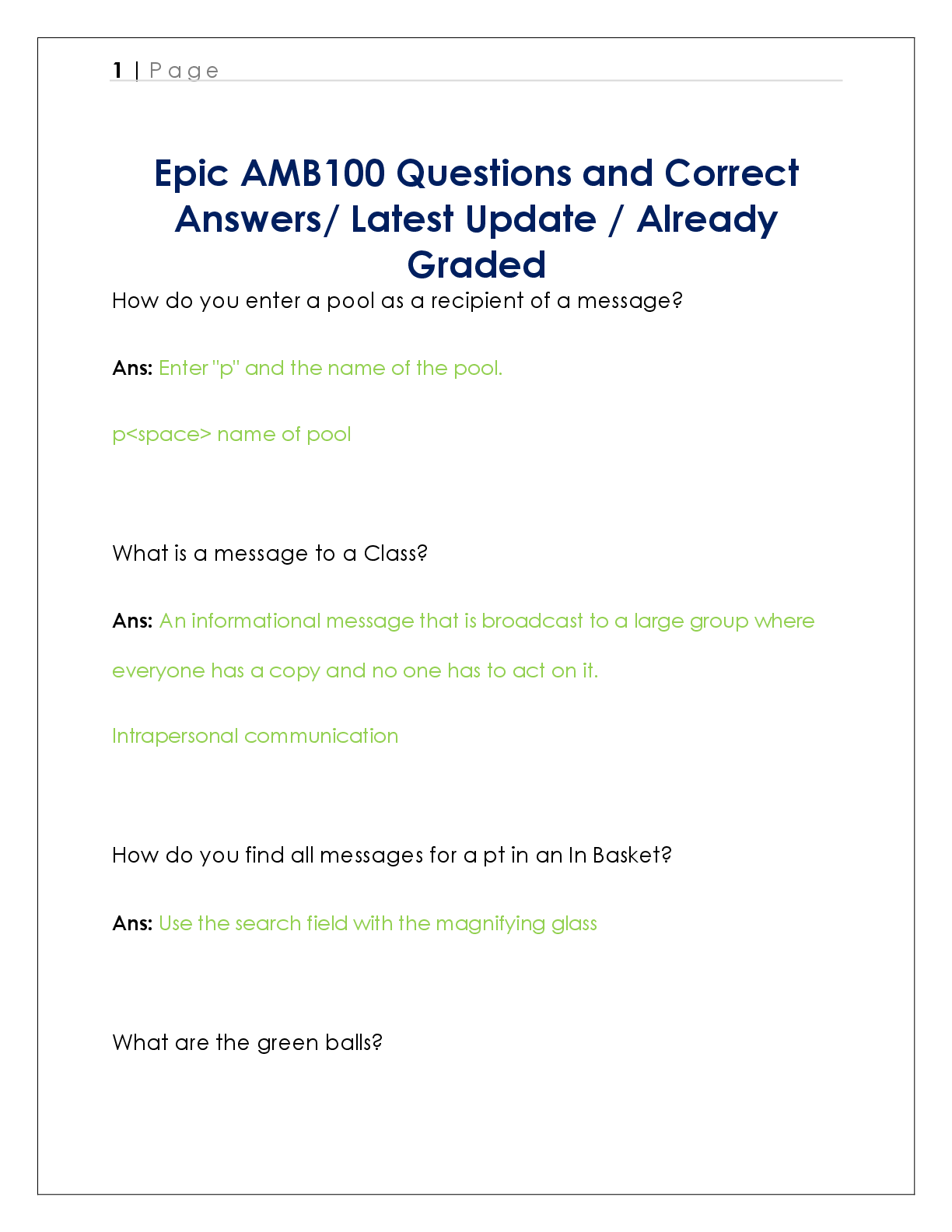 AMLS > A-Level Question Paper > Epic AMB100 Questions and Correct Answers/ Latest Update / Already Graded (All)