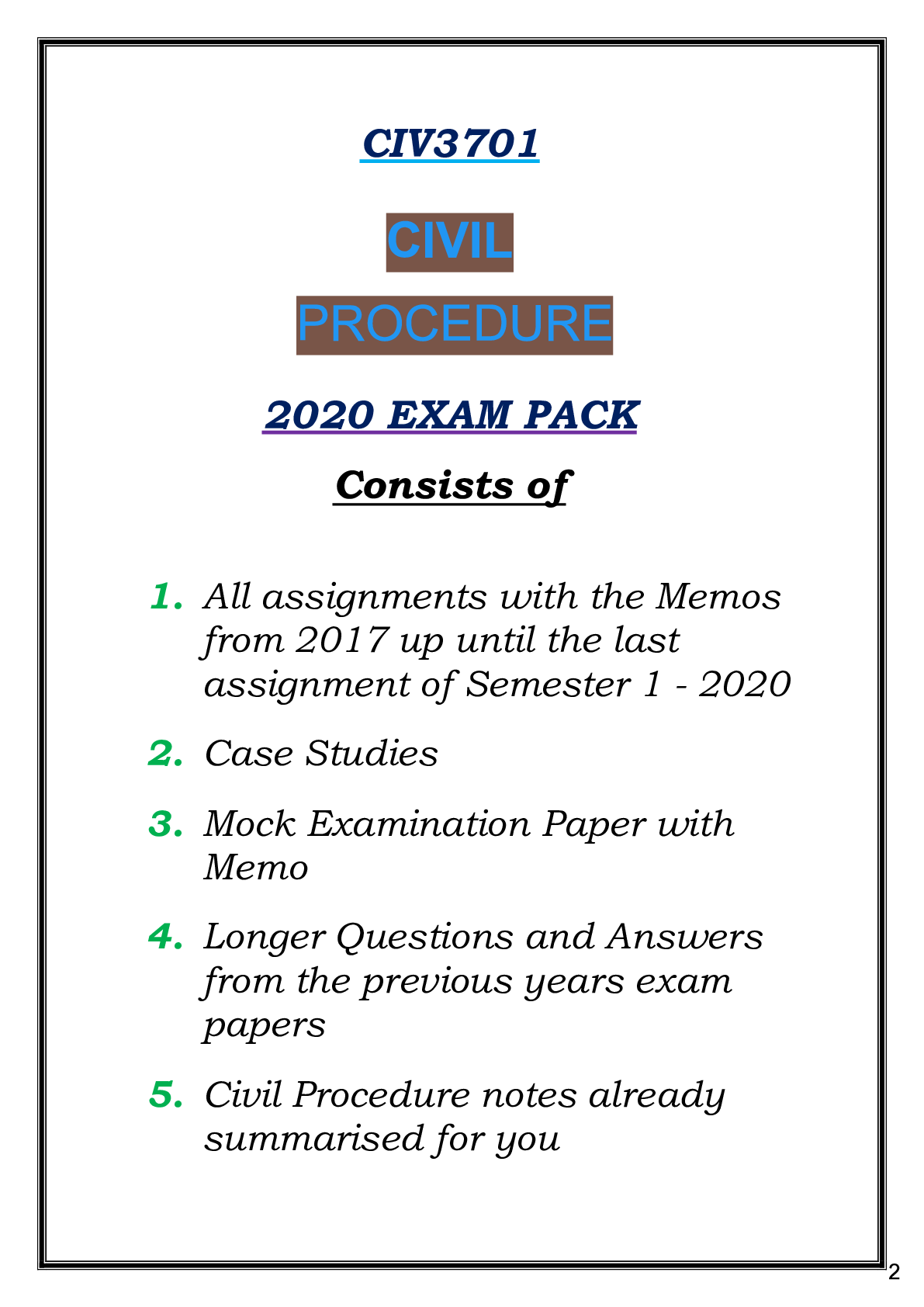 Civil Engineering > QUESTIONS & ANSWERS > CIV3701 CIVIL PROCEDURE 2020 EXAM PACK (All)