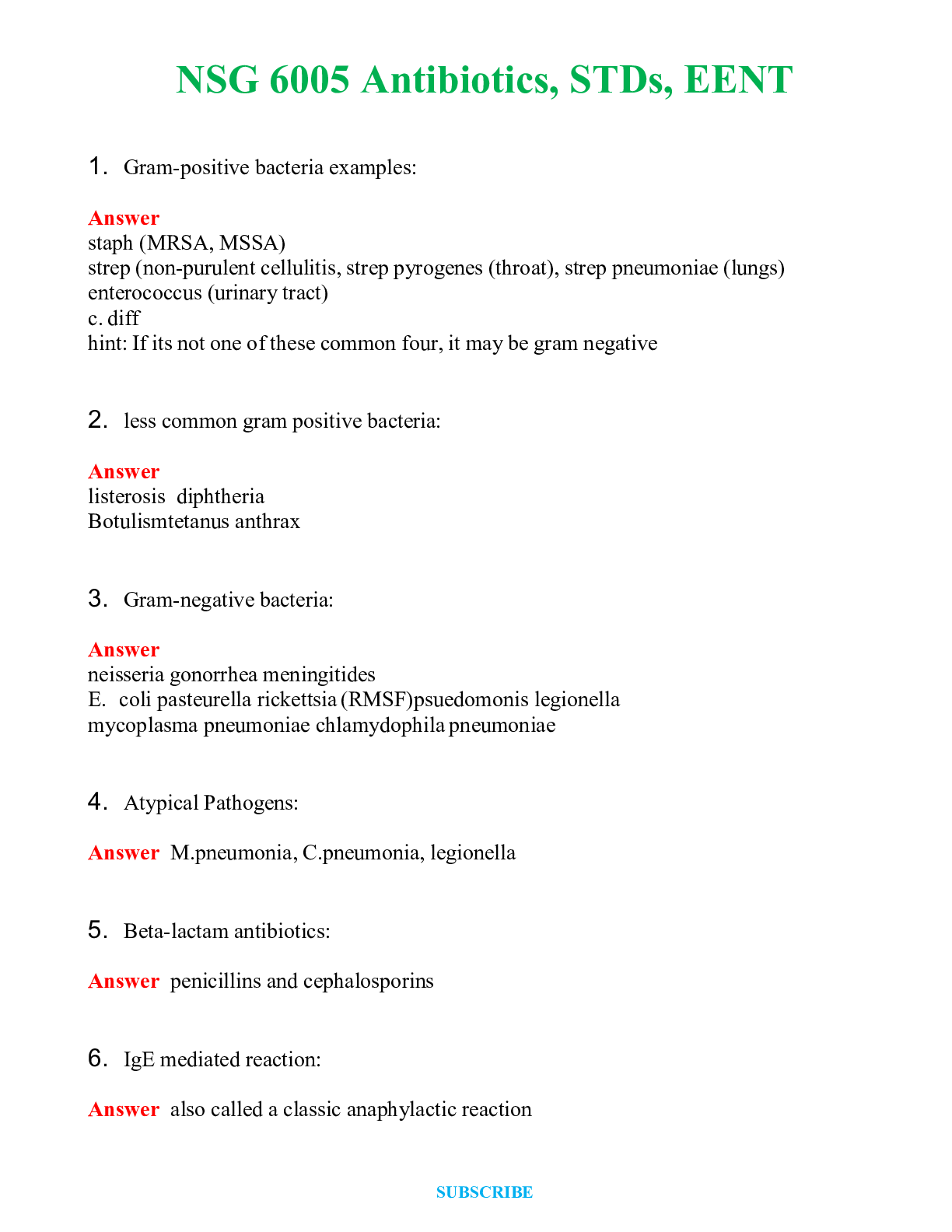 *NURSING > EXAM > NSG 6005 Antibiotics, STDs, EENT Questions and Verified Answers (All)