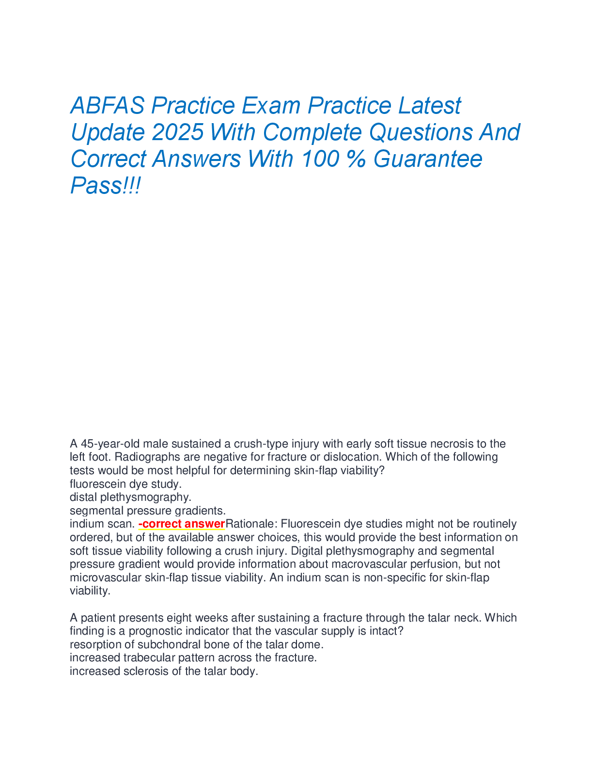 *NURSING > EXAM > ABFAS Practice Exam Practice Latest Update 2025 With Complete Questions And Correct Answers With 100 % Guarantee Pass!!! (All)
