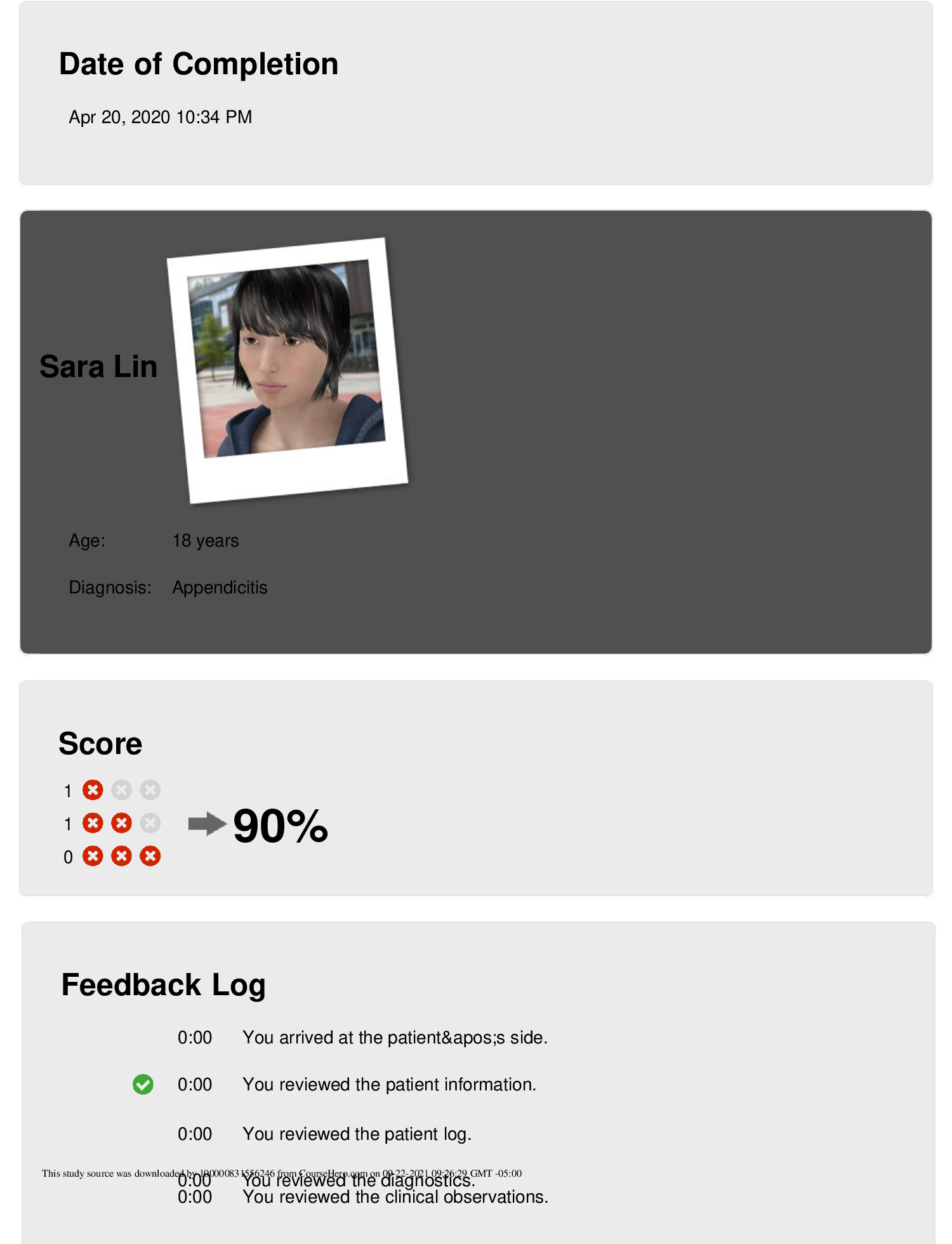 *NURSING > Feedback Log > Fatime Sanogo VSIM Feedback International Concepts Nursing Perimeter College GSU (All)