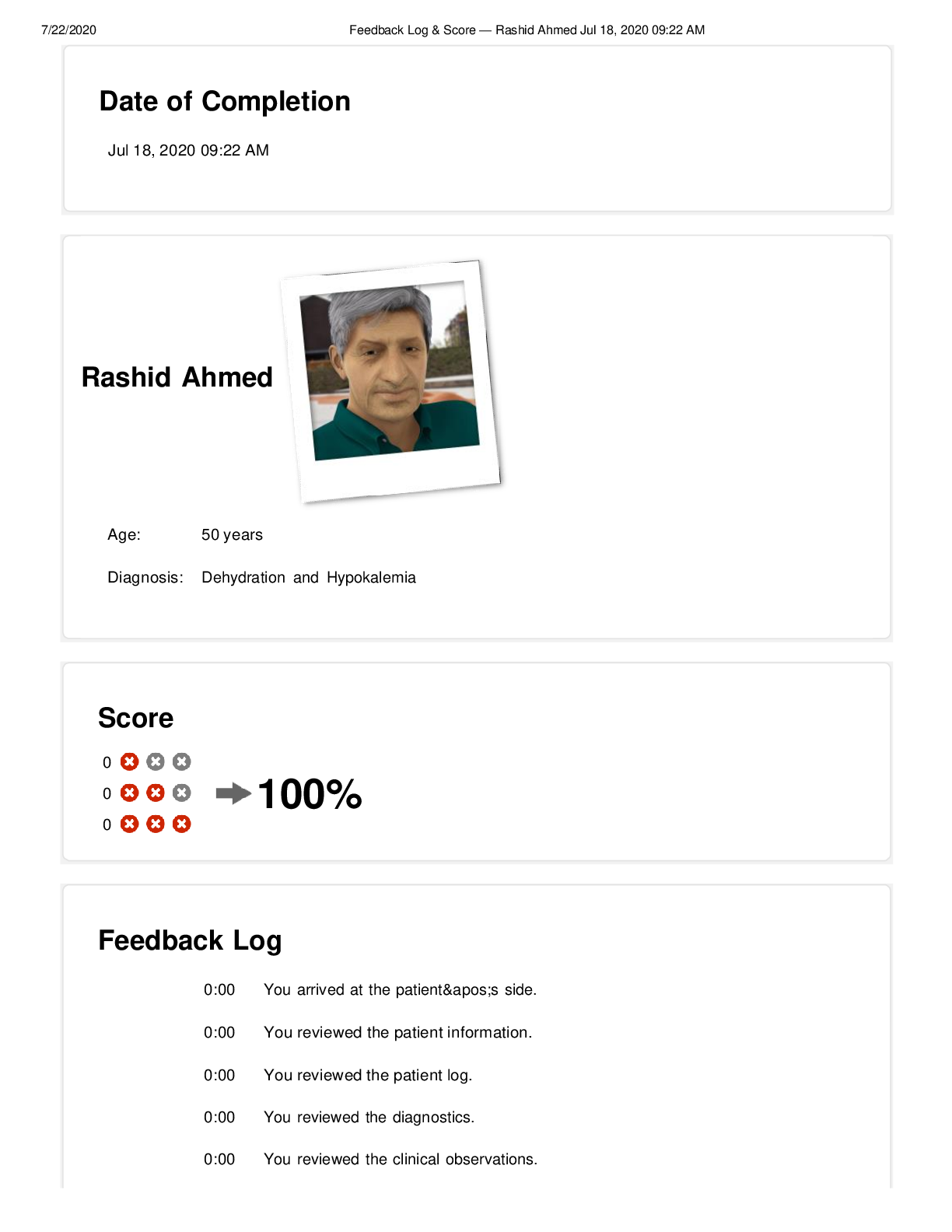 *NURSING > Feedback Log > Feedback Log Score Rashid Ahmed LATEST 2022 (All)