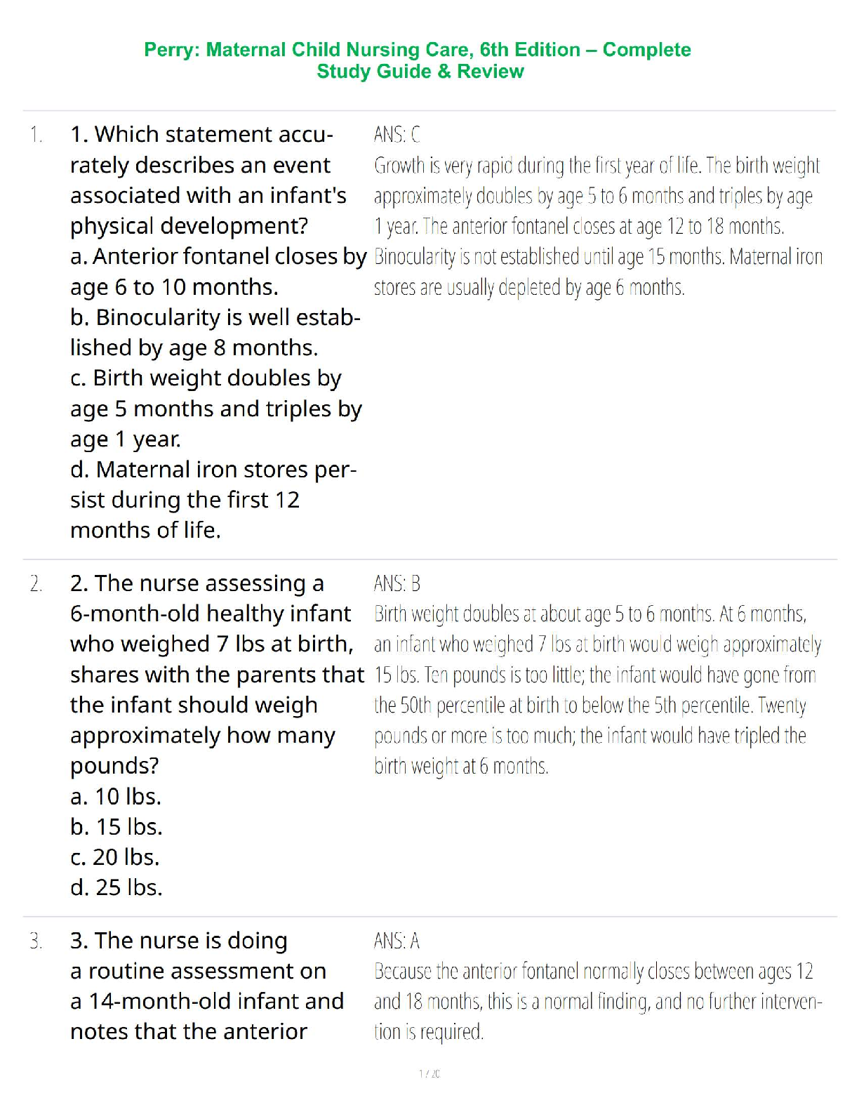 *NURSING > CONNECT QUIZZES > Perry: Maternal Child Nursing Care, 6th Edition – Complete Study Guide & Review (All)