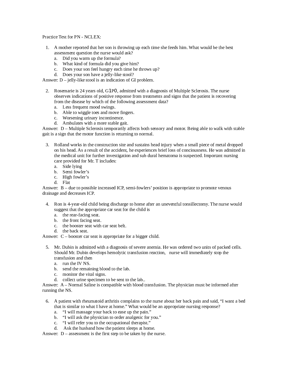 *NURSING > NCLEX-PN > Practice Test for PN - NCLEX (All)
