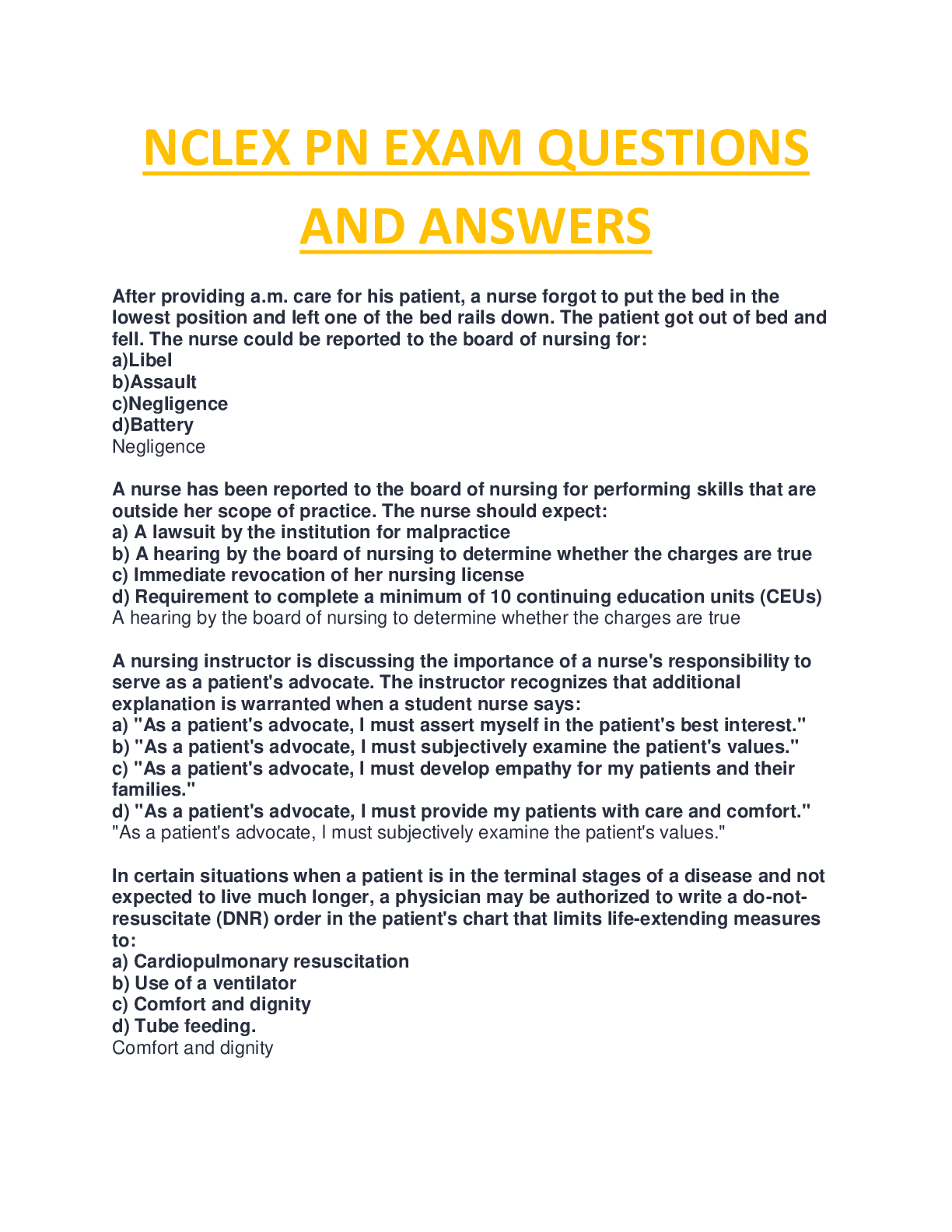 *NURSING > NCLEX-PN > NURS 6401/NCLEX-PN Test-Bank 200 Questions with Answers and Explanation Latest updated 2022/2023,100% CORRECT (All)
