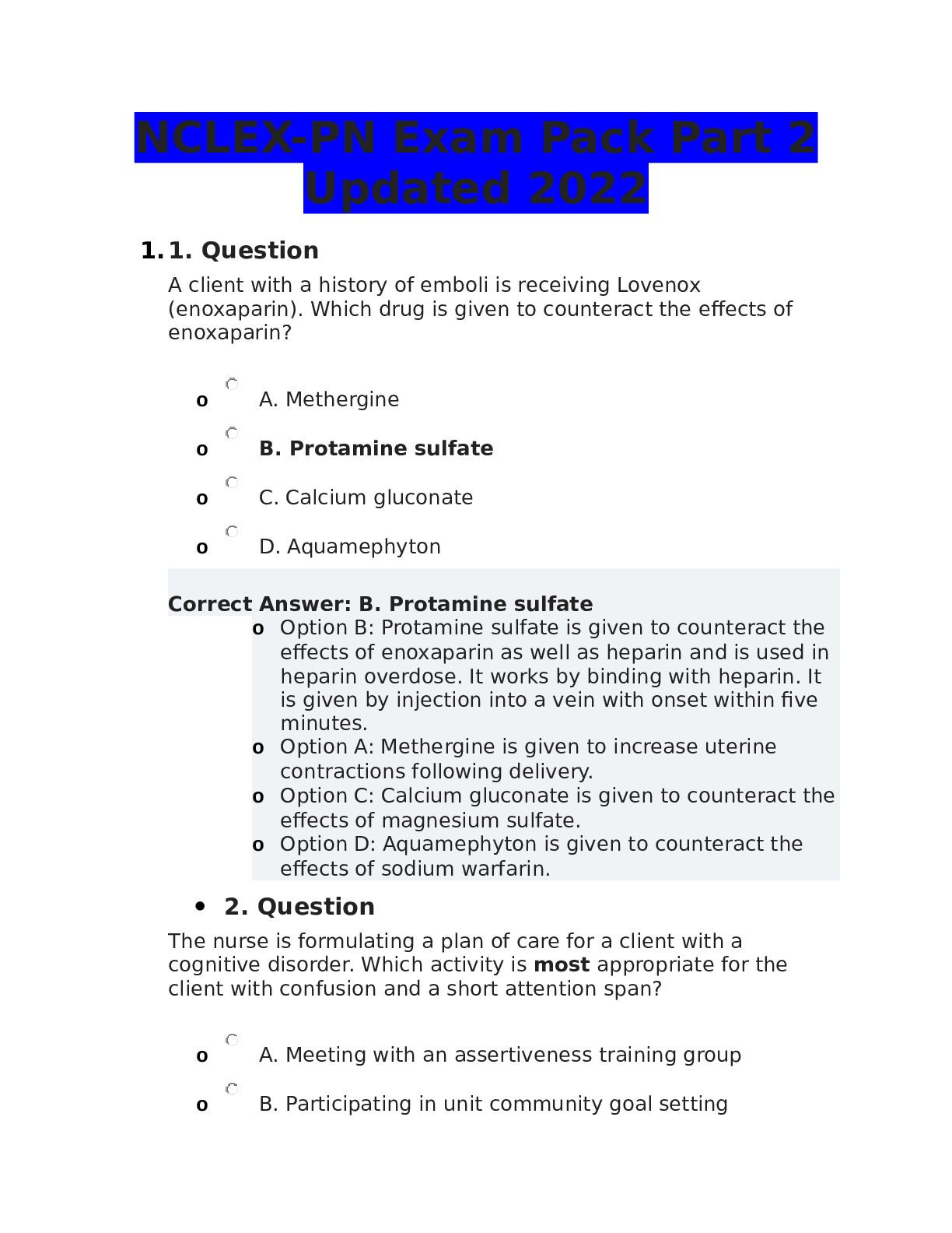 *NURSING > NCLEX-PN > NCLEX-PN Exam Pack Part 2 Updated 2022 | questions and answers | with complete solutions (All)