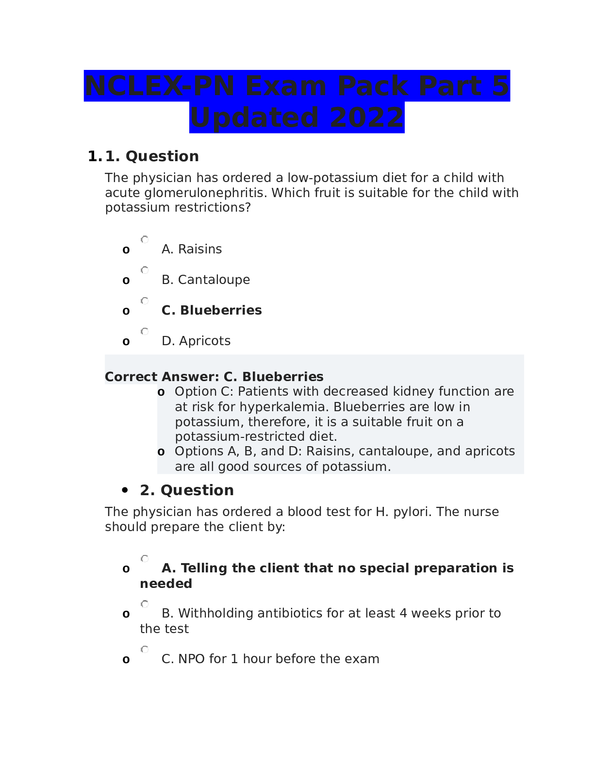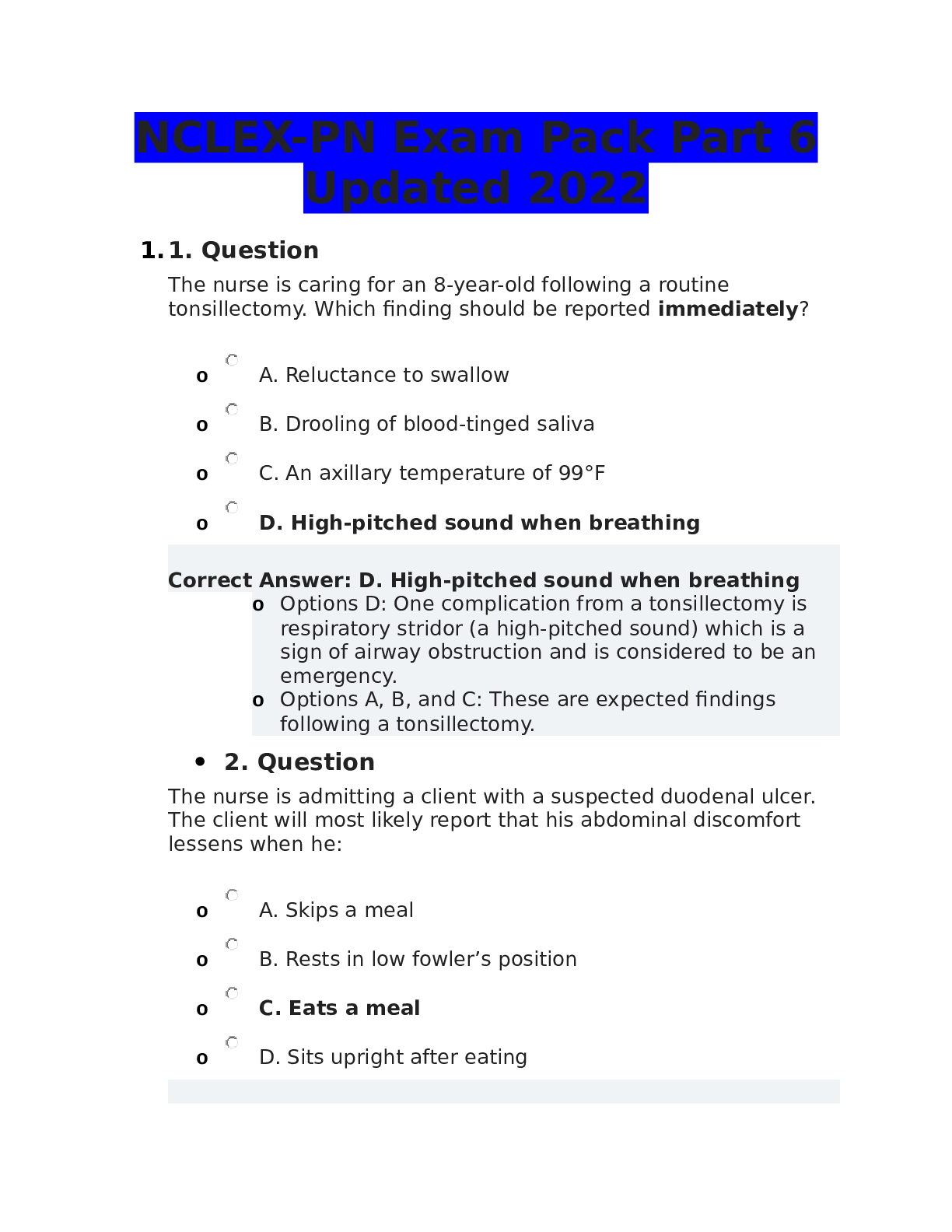 *NURSING > NCLEX-PN > NCLEX-PN Exam Pack Part 2 Updated 2022 | top rated (All)