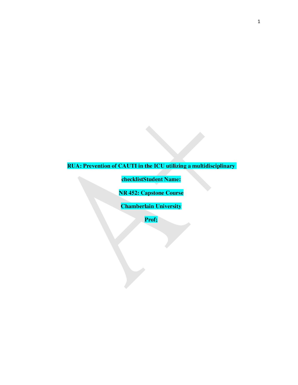 *NURSING > Research Paper > Chamberlain College of Nursing - NR 449Week5RUA (All)
