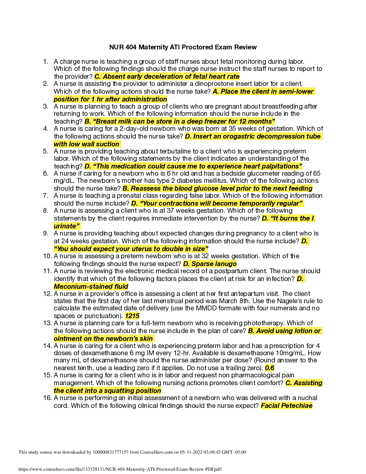 *NURSING > Final Exam Review > ATI Maternal Newborn Final Review (All)