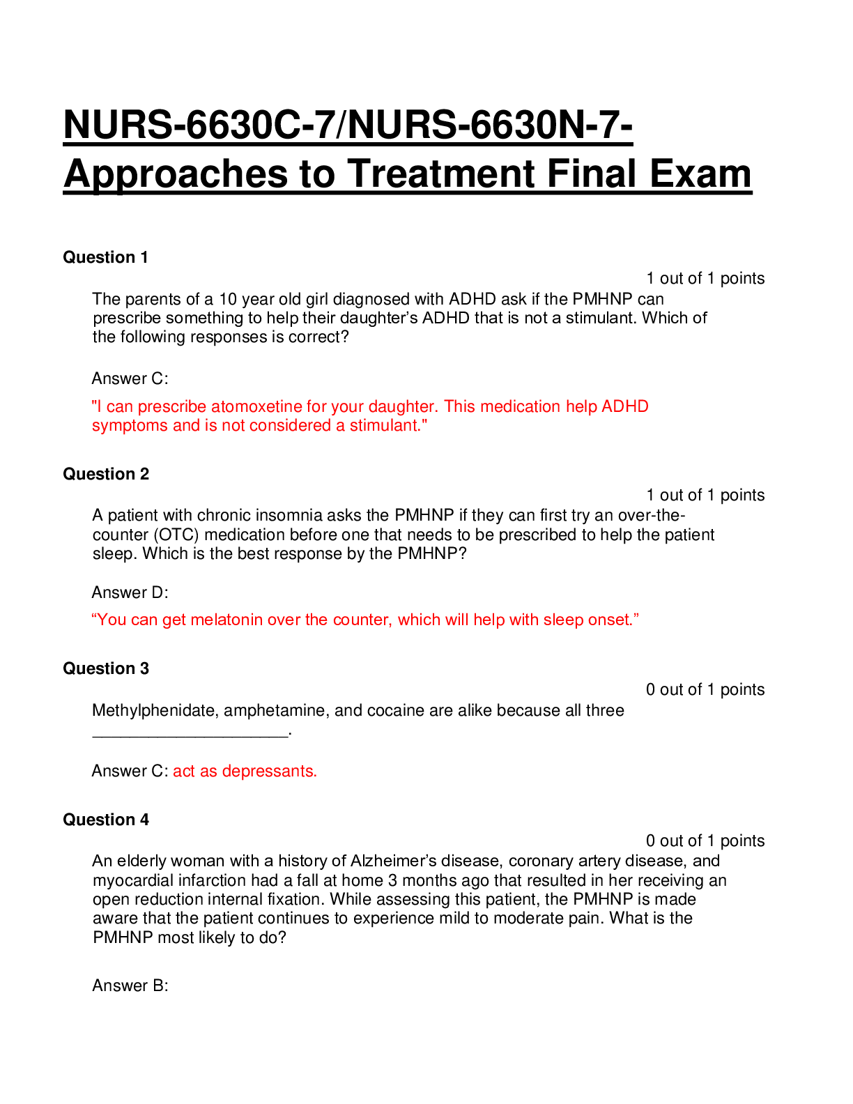 *NURSING > Final Exam Review > NURS-6630C-7/NURS-6630N-7- APPROACHES TO TREATMENT FINAL EXAM. QUESTIONS AND ANSWERS. (All)