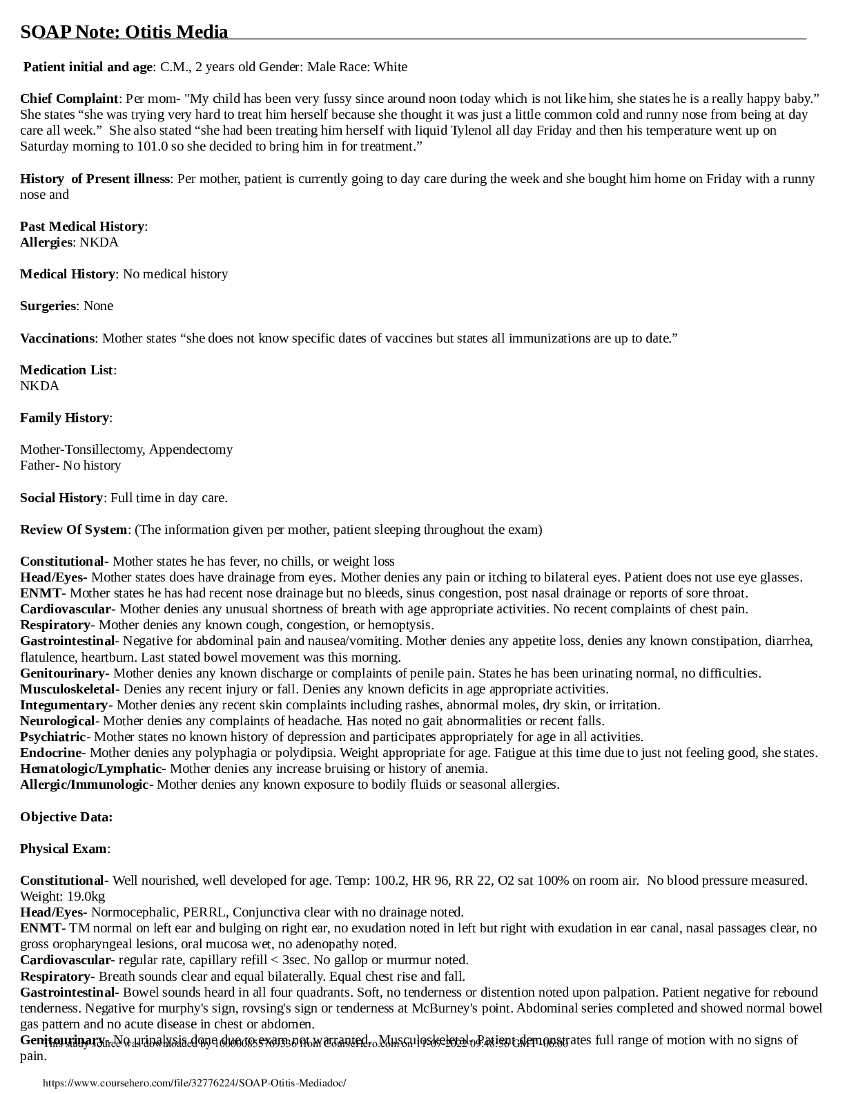 *NURSING > SOAP NOTE > SOAP Note #1 NURS 6230 1 Older Adults (All)