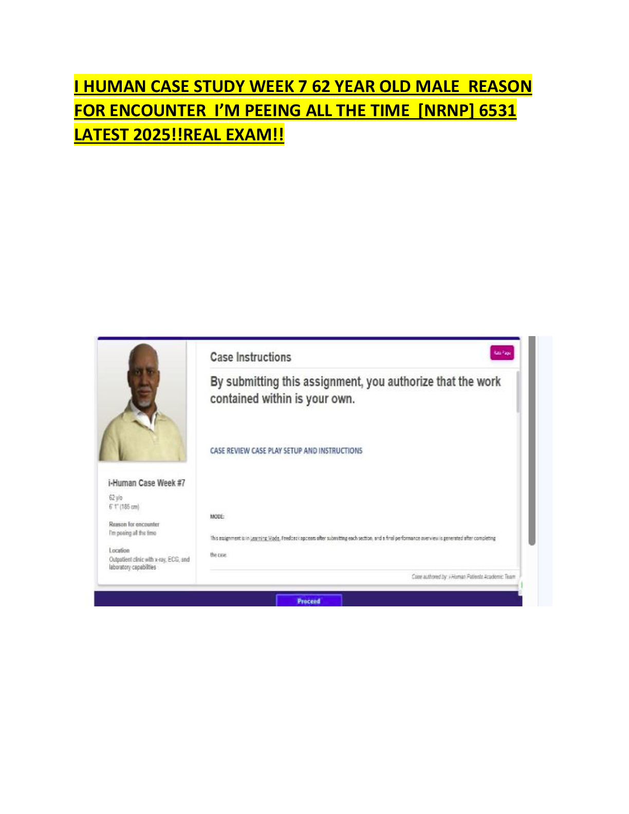 *NURSING > iHuman Case Studies > NRNP 6531 Week 7 iHuman Case Study – 62-Year-Old Male with Frequent Urination (2025) (All)