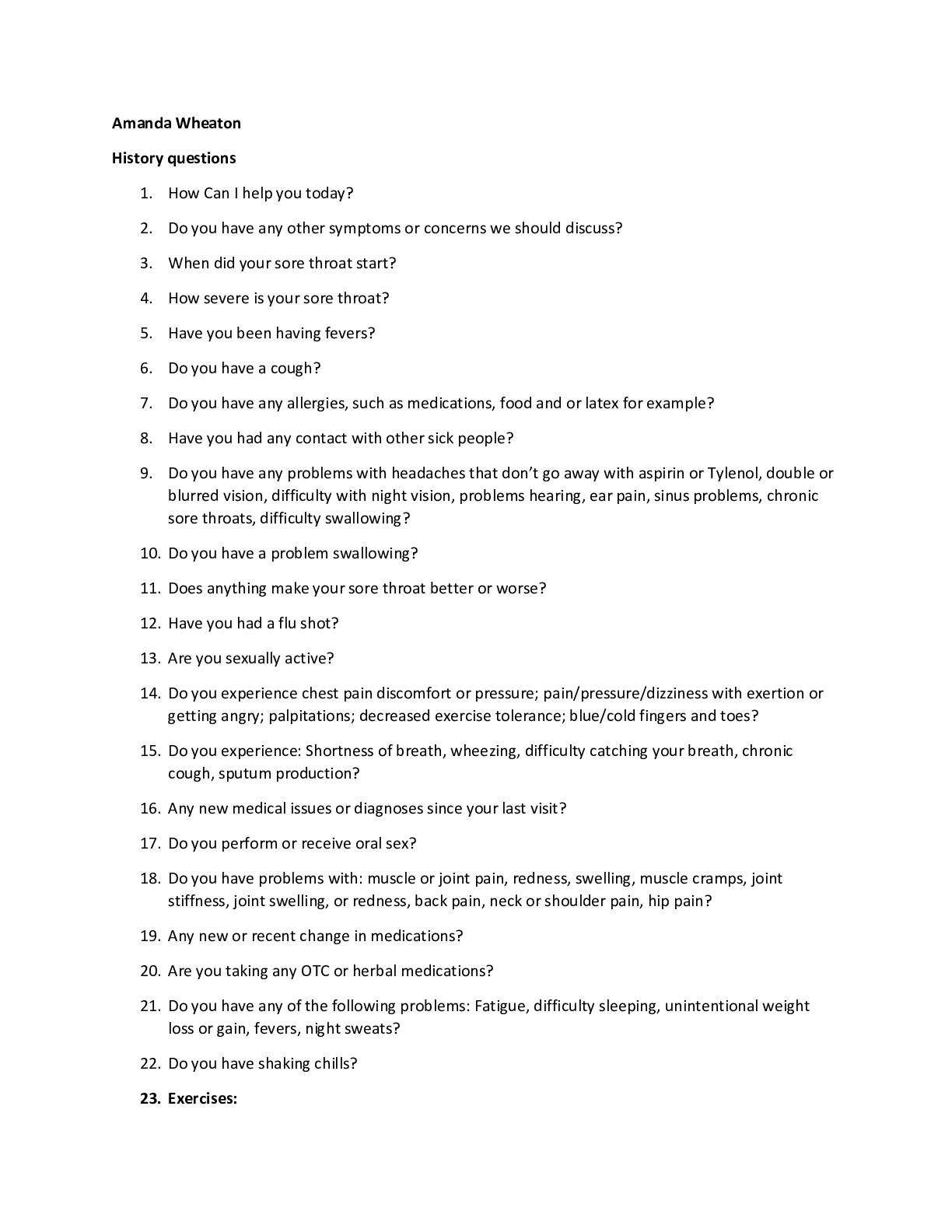*NURSING > iHuman Case Studies > Amanda Wheat iHuman case (All)