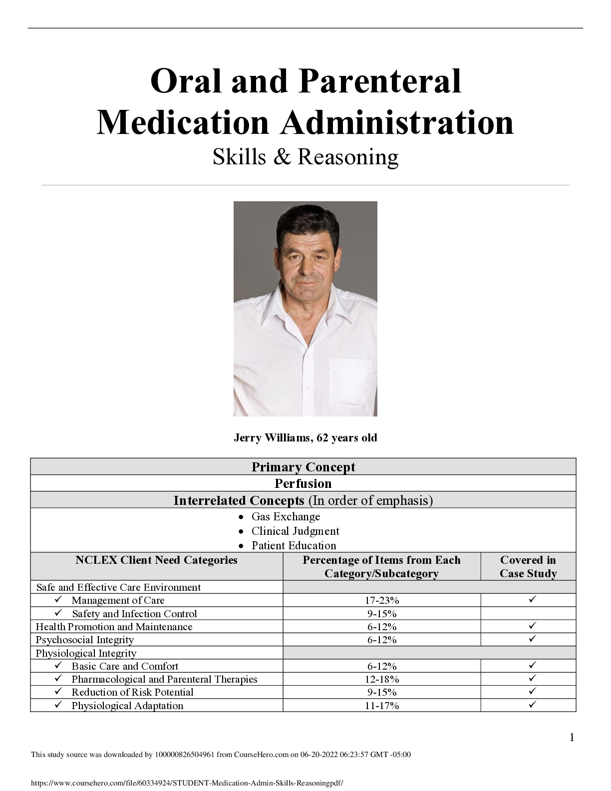 *NURSING > SHADOW HEALTH > Oral and Parenteral Medication Administration Skills & Reasoning Jerry Williams, 62 years old (All)