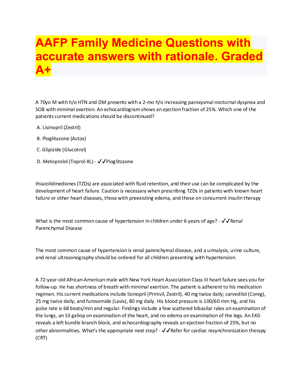 *NURSING > TEST BANKS > AAFP Family Medicine Test Bank Questions with accurate answers with rationale. Graded A+ (All)