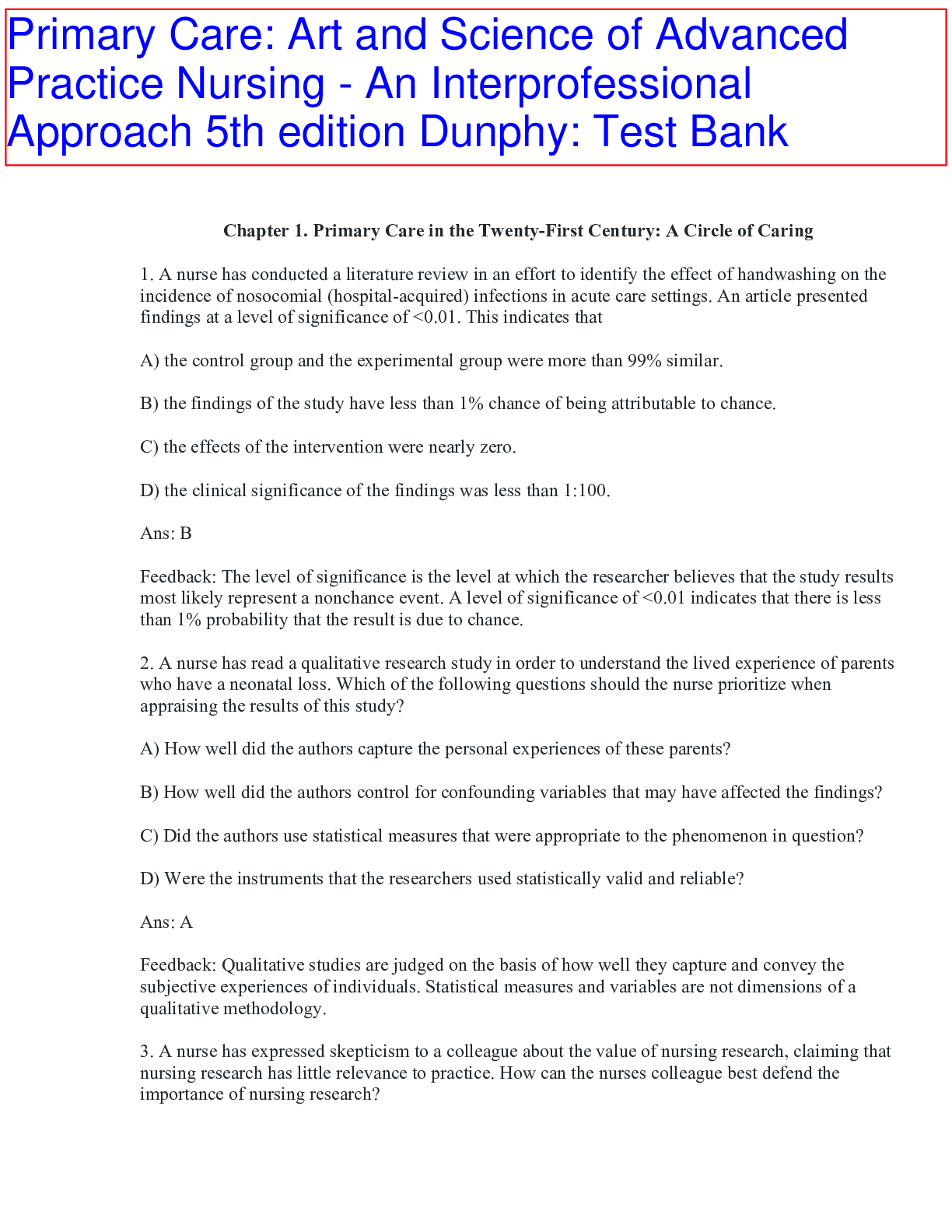 *NURSING > TEST BANKS > Primary Care Art and Science of Advanced Practice Nursing An Interprofessional Approach 5th Edition by Dunphy | TEST BANK (All)