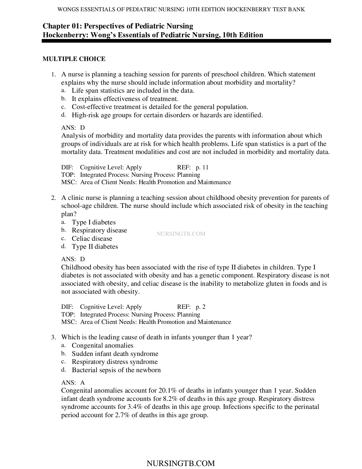 *NURSING > TEST BANKS > Wongs Essentials of Pediatric Nursing 10th Edition by Hockenberry TEST BANK (All)