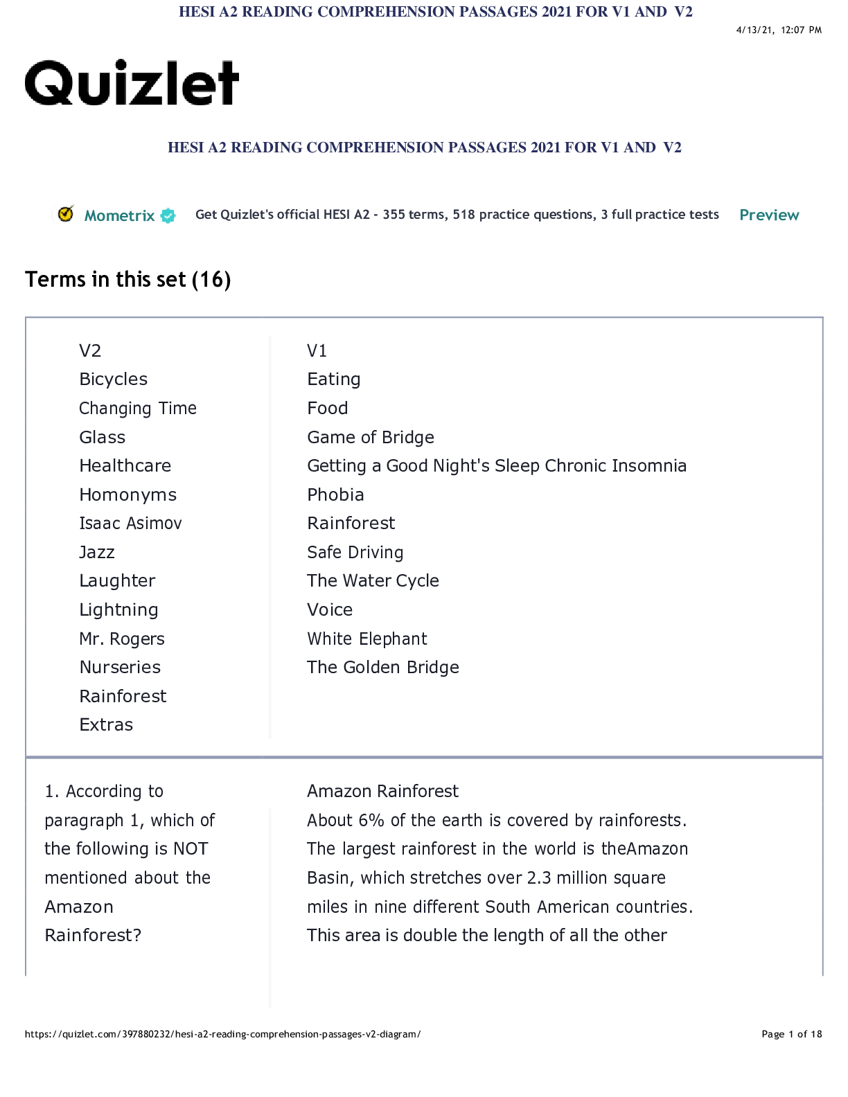 *NURSING > HESI > HESI A2 READING COMPREHENSION PASSAGES 2021 FOR V1 AND V2 (All)