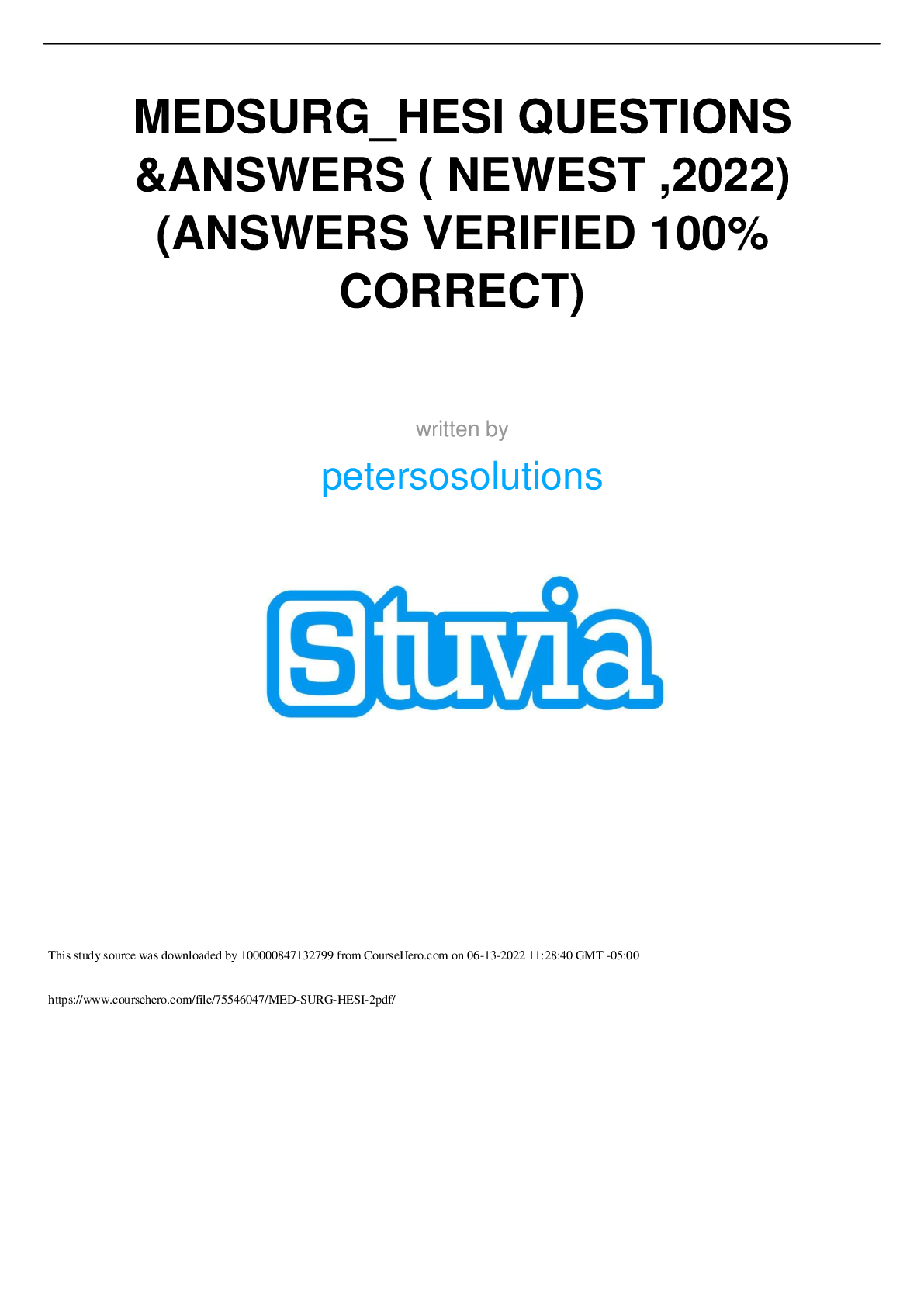 *NURSING > HESI MED SURG > MEDSURG_HESI QUESTIONS &ANSWERS ( NEWEST ,2022) (ANSWERS VERIFIED 100% CORRECT) (All)