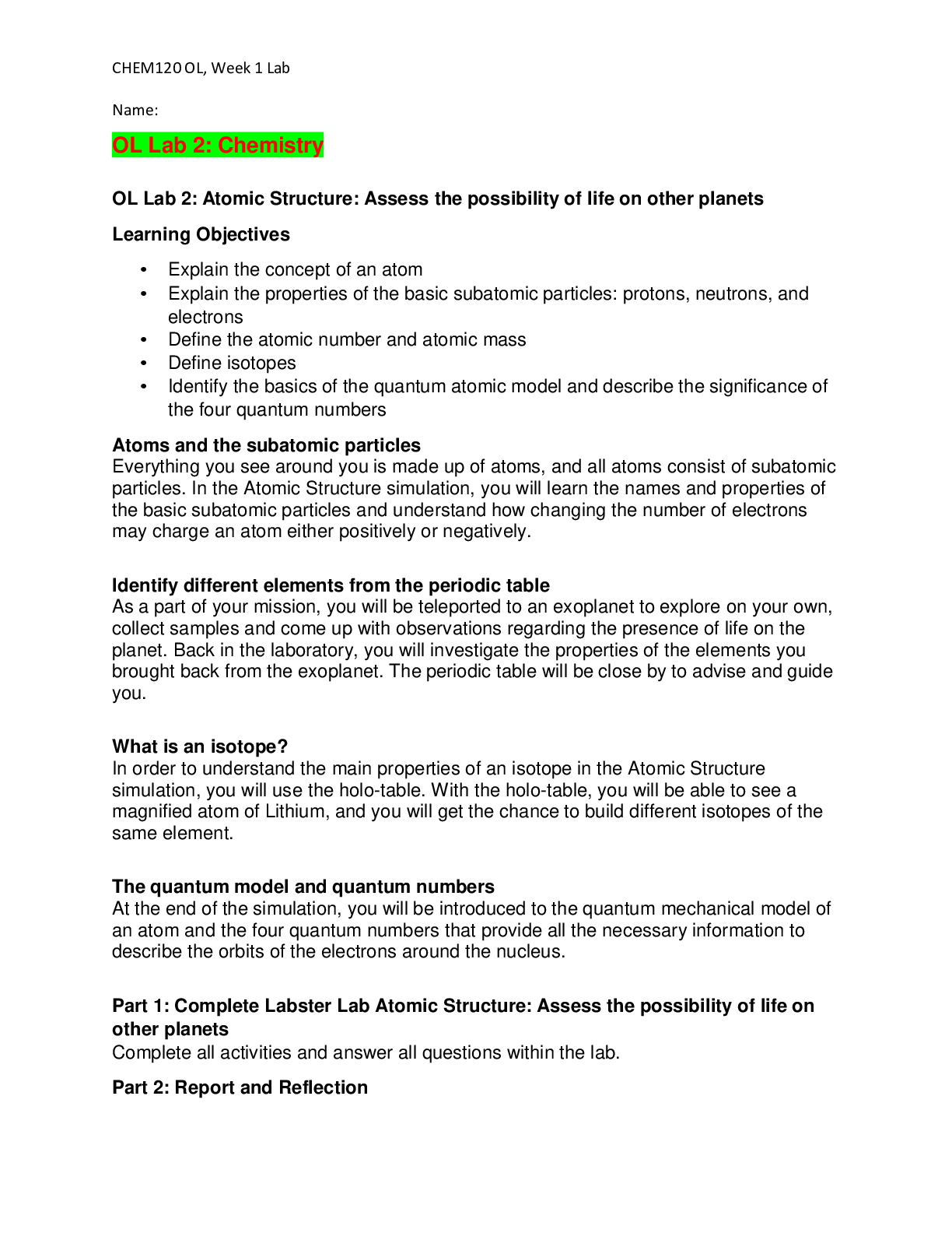 *NURSING > Lab Experiment > OL Lab 2 Chemistry Safety 1 |Elaborated| CHEM-120: Intro to General, Organic & Biological Chemistry with Lab (All)