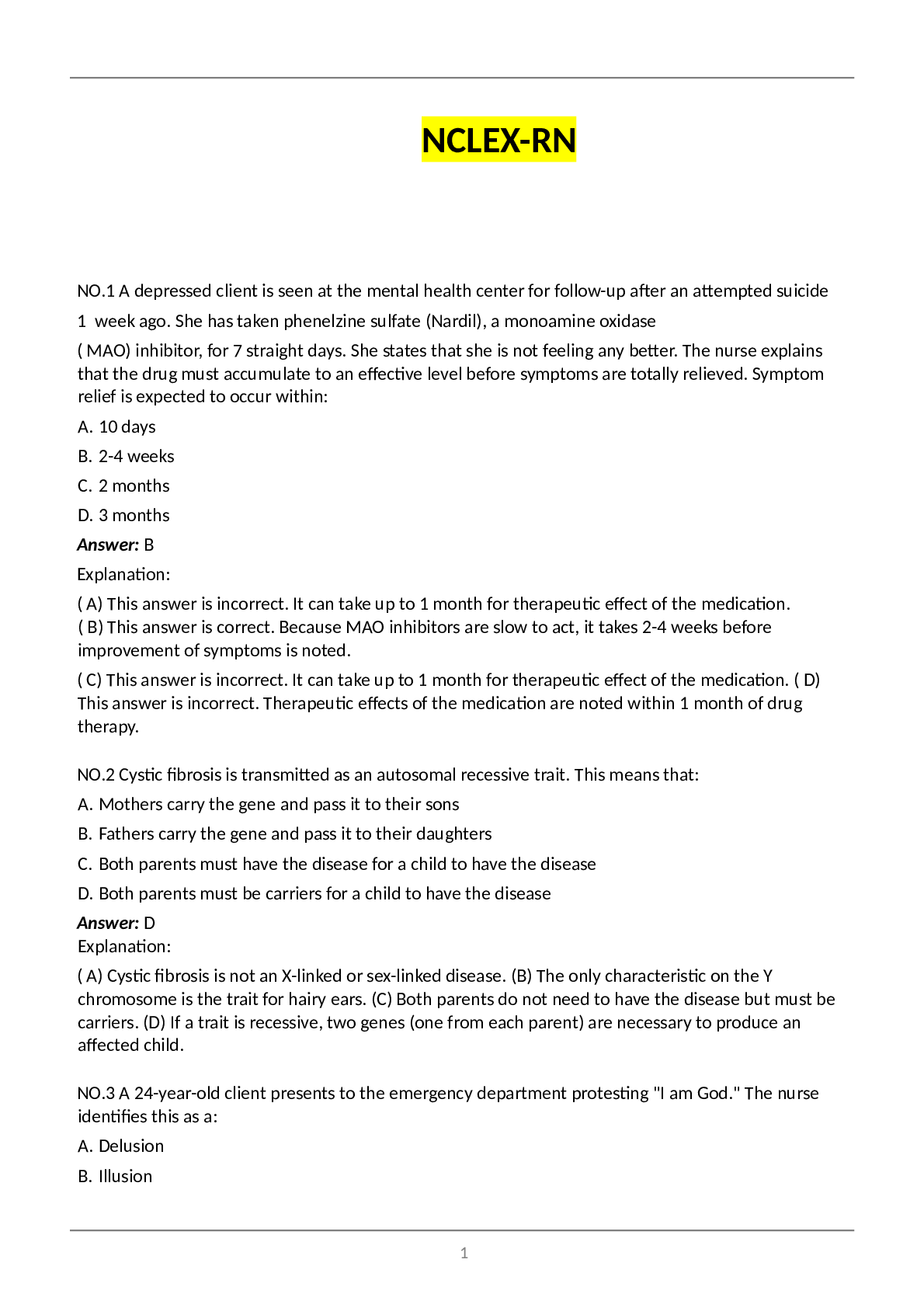 *NURSING > NCLEX > NR 292 (NR292Mental Health NCLEX QUESTIONS AND ANSWER) (NR 292 (NR292Mental Health NCLEX QUESTIONS AND ANSWER) (All)