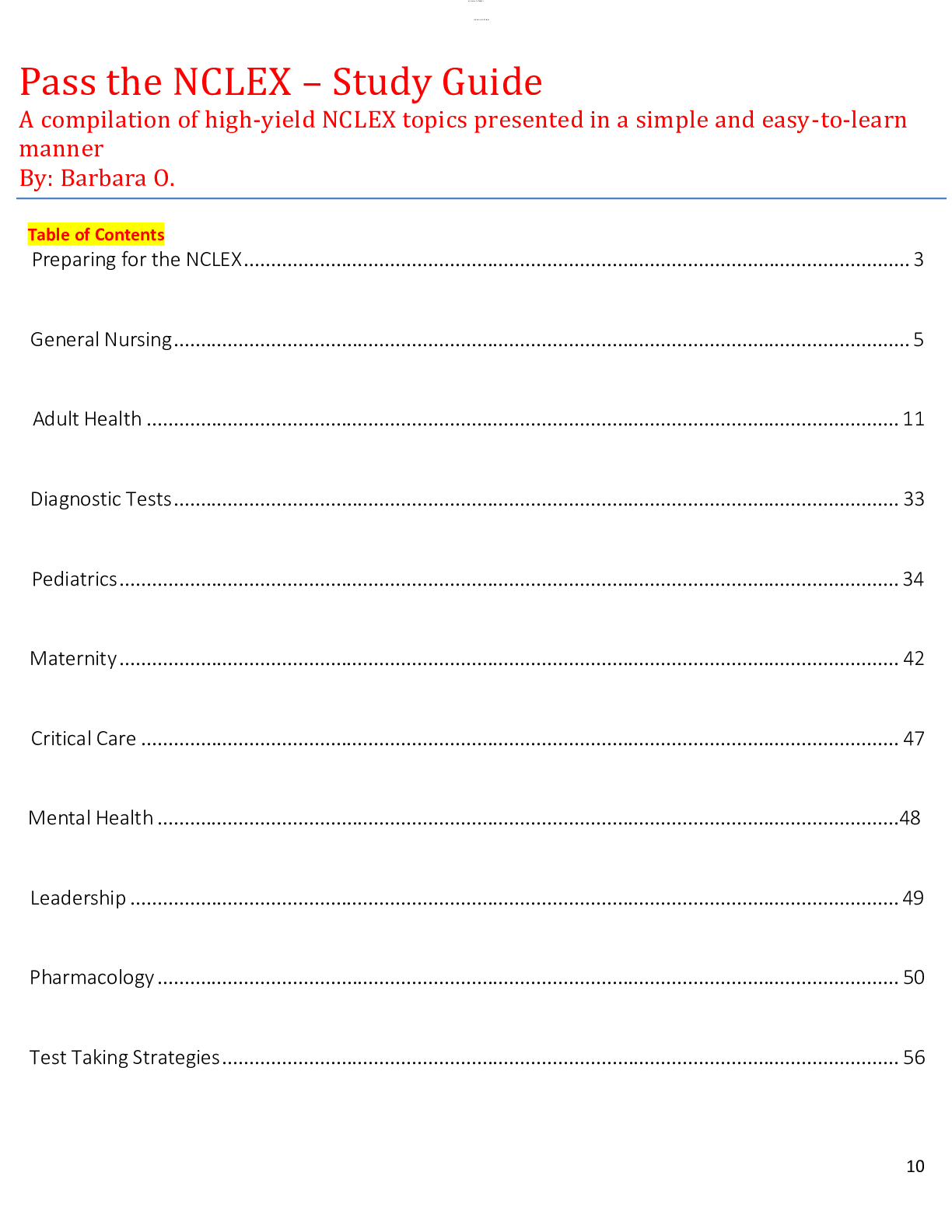 *NURSING > NCLEX > Pass the NCLEX – Study Guide A compilation of high-yield NCLEX topics presented in a simple and easy-to-learn manner By: Barbara O. (All)