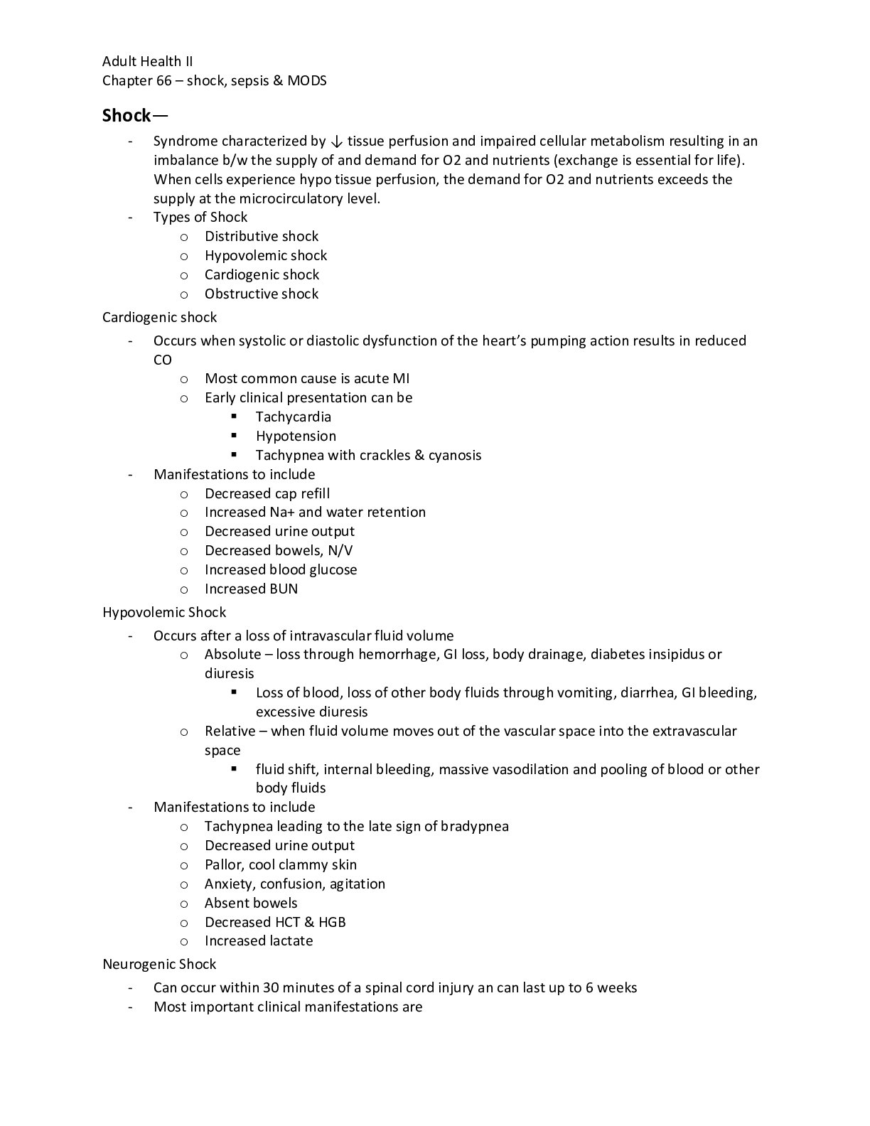 *NURSING > Solutions Guide > NURS 4183Adult Health II - Shock, Sepsis & MODS. / Adult Health II - Shock, Sepsis and MODS. (All)