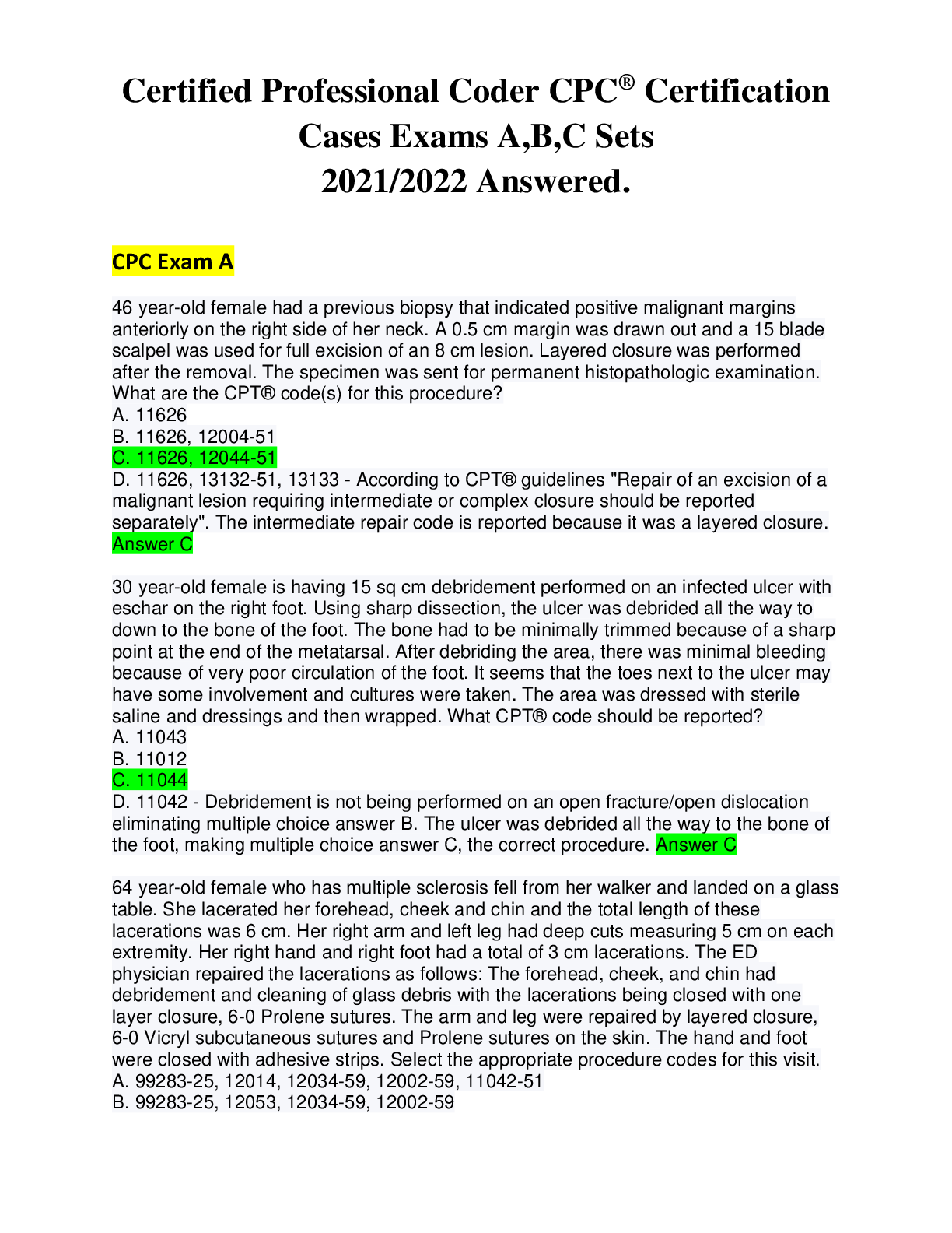 *NURSING > Solutions Guide > Certified Professional Coder CPC® Certification Cases Exams A,B,C Sets Answered With Lengthy Rationales (All)