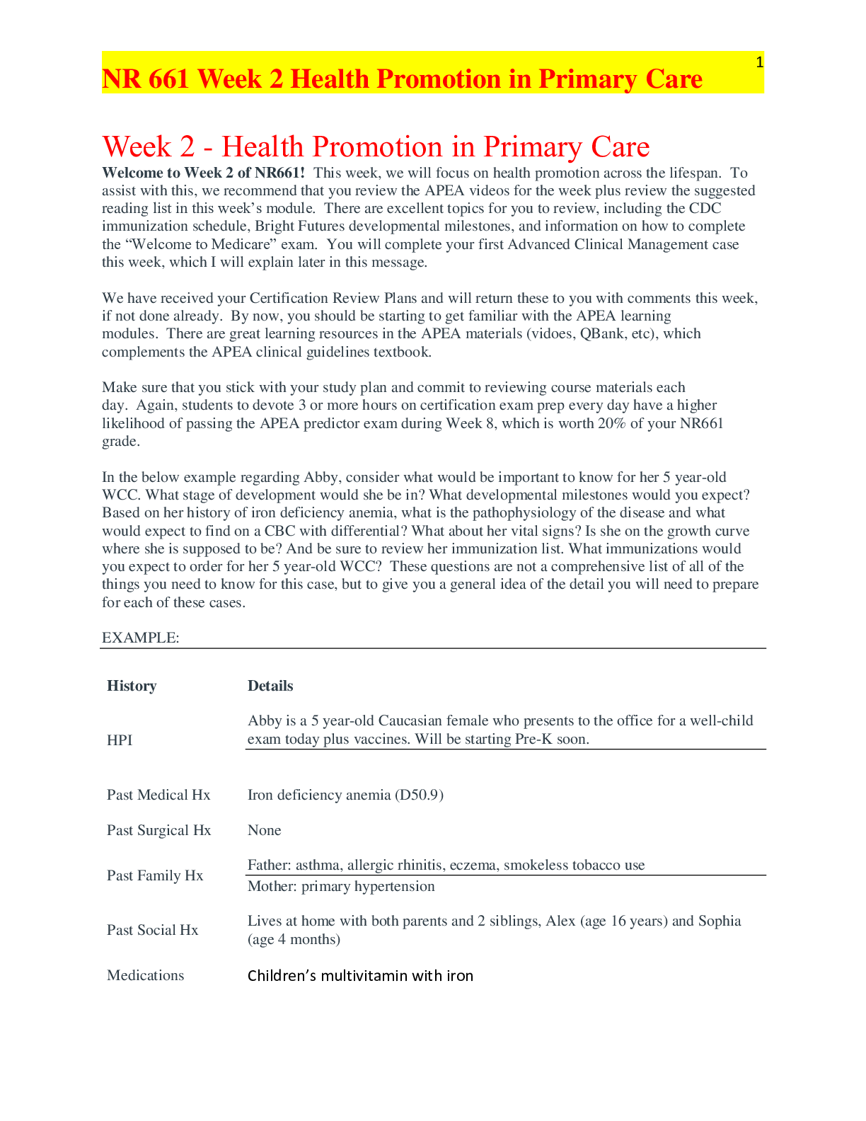 *NURSING > CASE STUDY > NR 661 Week 2 Health Promotion in Primary Care (All)