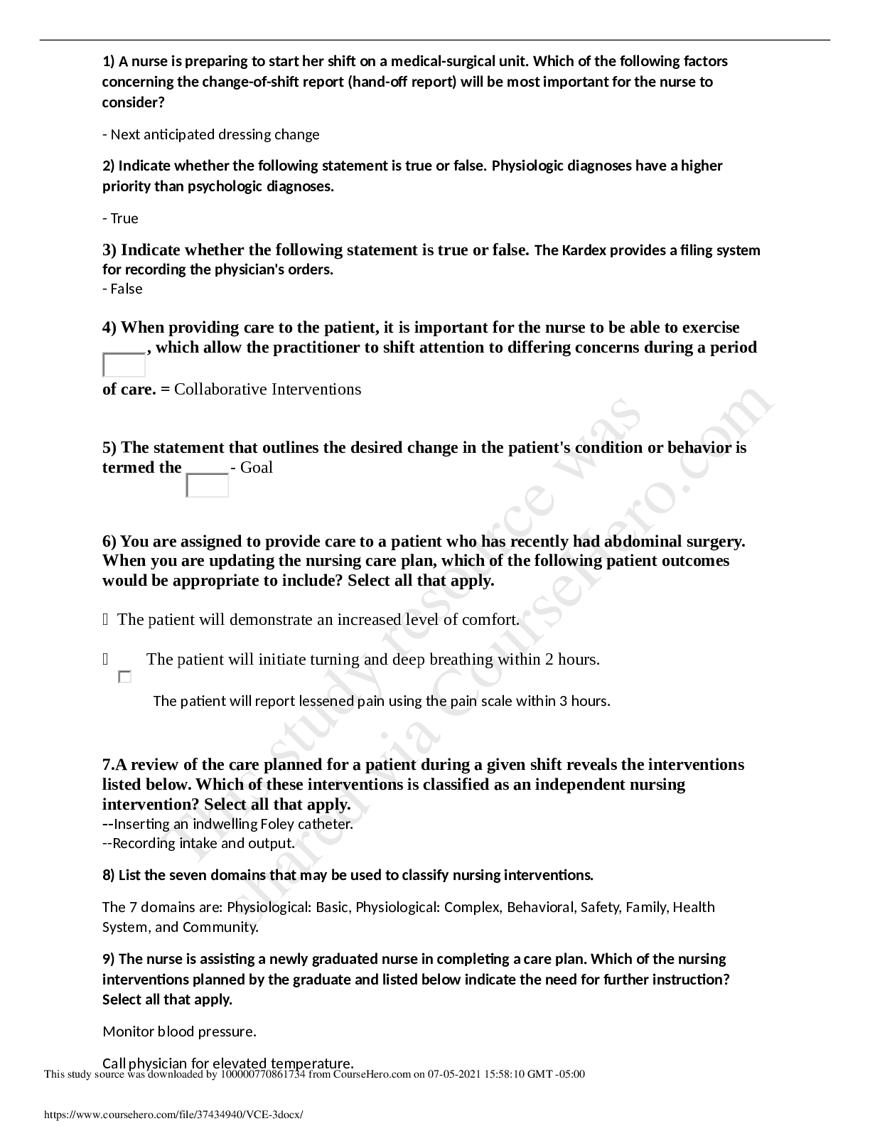 *NURSING > Virtual Clinical Experiment (VCE) > Lesson 03 - Planning and Application of the Nursing Process: HESI RN FLMIR 1904 COHORT (already solved) (All)