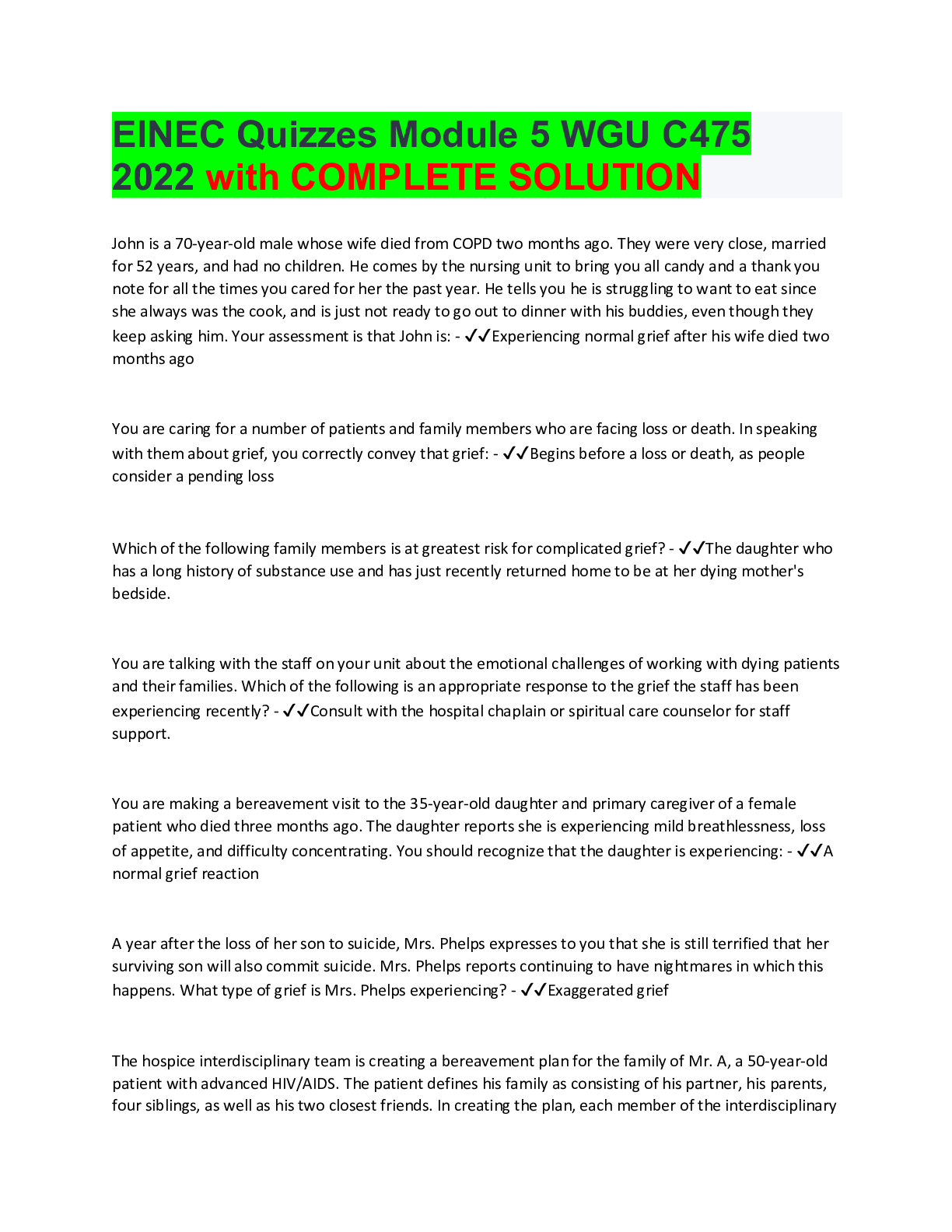 *NURSING > AQA > ElNEC Quizzes Module 5 WGU C475 2022 with COMPLETE SOLUTION (All)