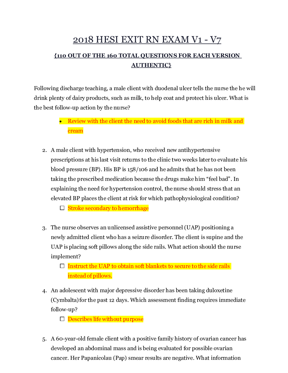 *NURSING > AQA QUESTION and MARK SCHEMES > 2018 HESI EXIT RN EXAM V1 - V7 RATED 5 STARS (All)