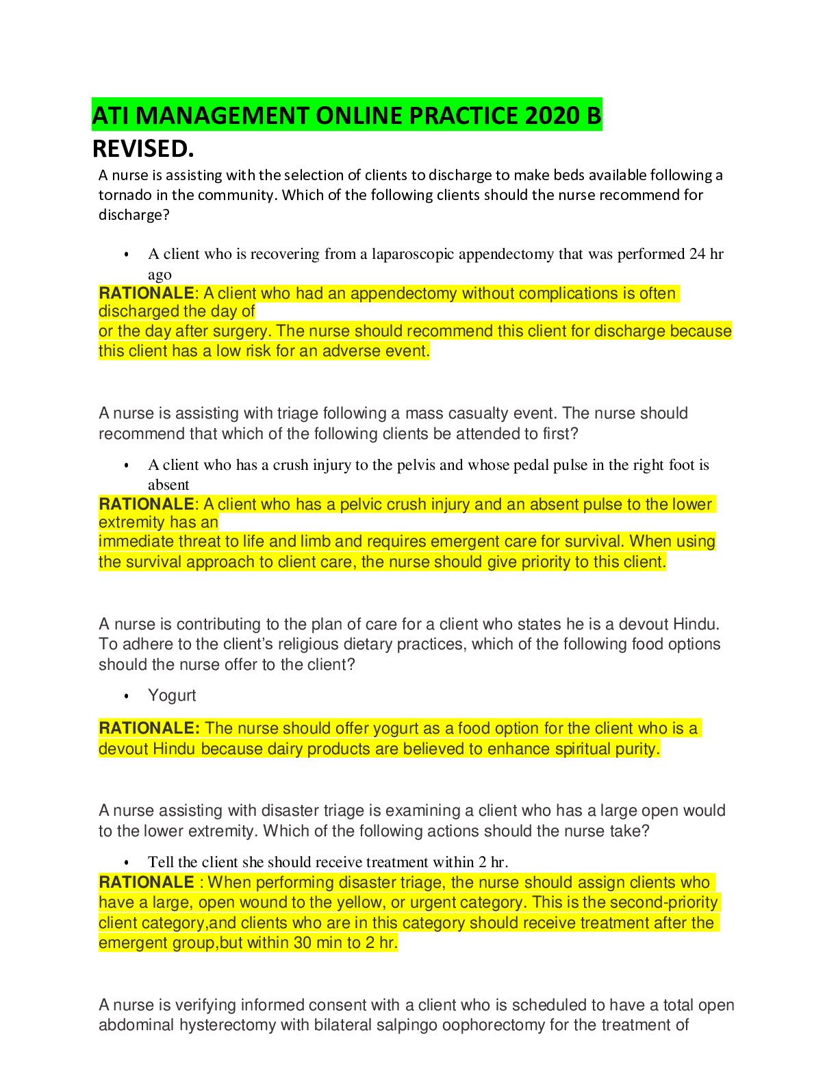 *NURSING > AQA QUESTION and MARK SCHEMES > ATI MANAGEMENT ONLINE PRACTICE 2020 B REVISED. (All)