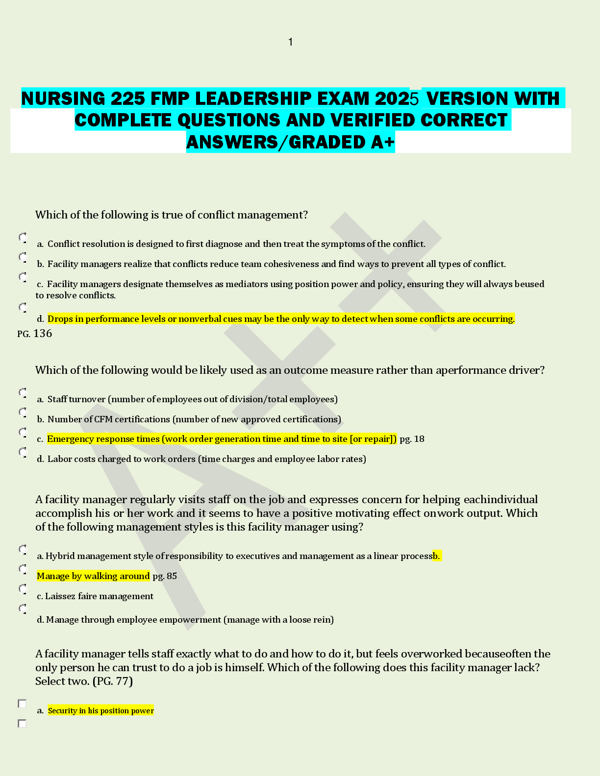 *NURSING > AQA QUESTION and MARK SCHEMES > NURSING 225 FMP LEADERSHIP EXAM 2025 VERSION WITH COMPLETE QUESTIONS AND VERIFIED CORRECT ANSWERS/GRADED A+ (All)