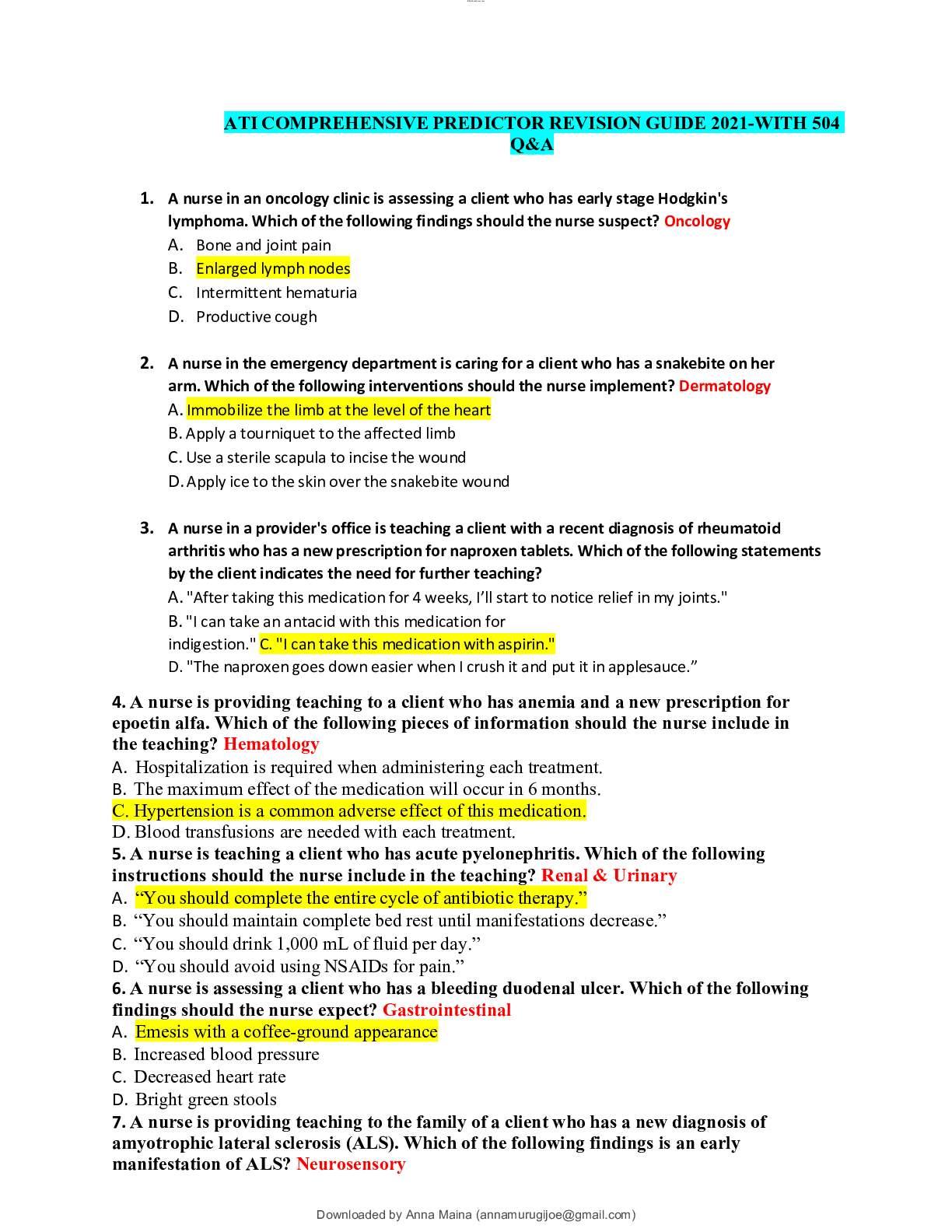 *NURSING > ATI > ATI COMPREHENSIVE PREDICTOR REVISION GUIDE 2021-WITH 504 Q&A (All)