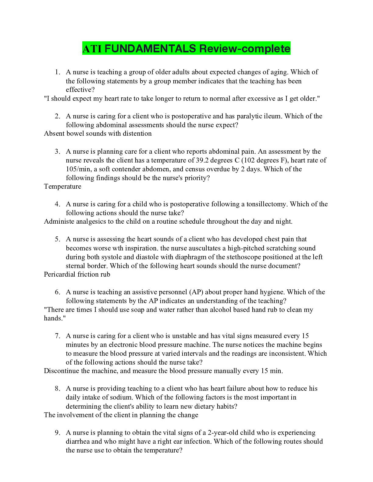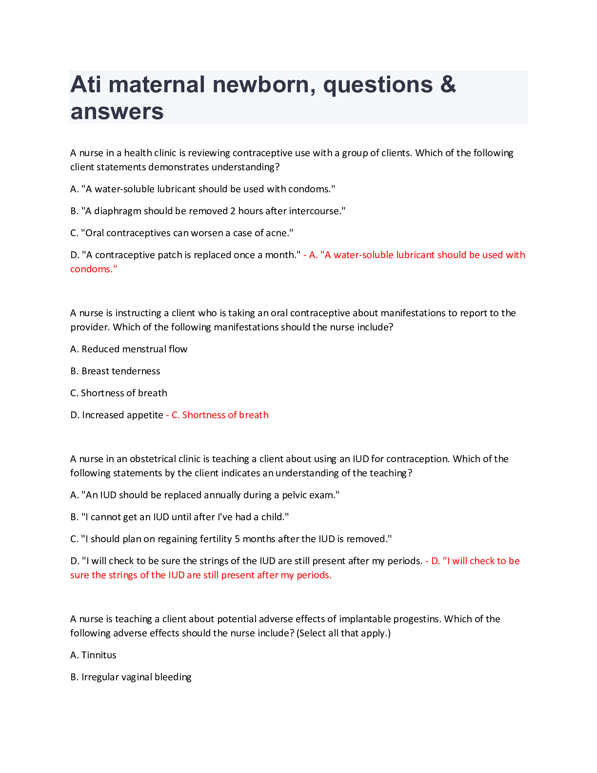 *NURSING > ATI > Ati maternal newborn, questions & answers (All)